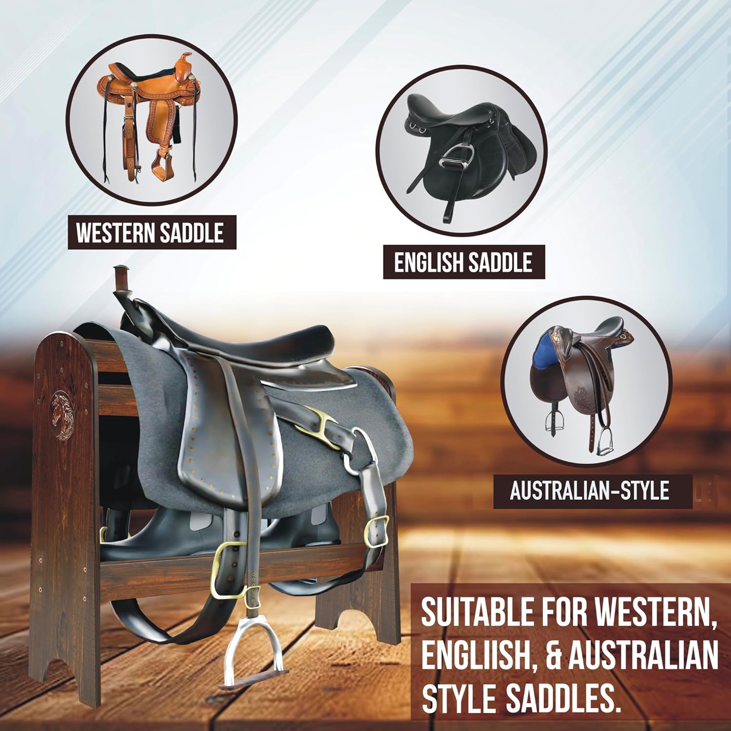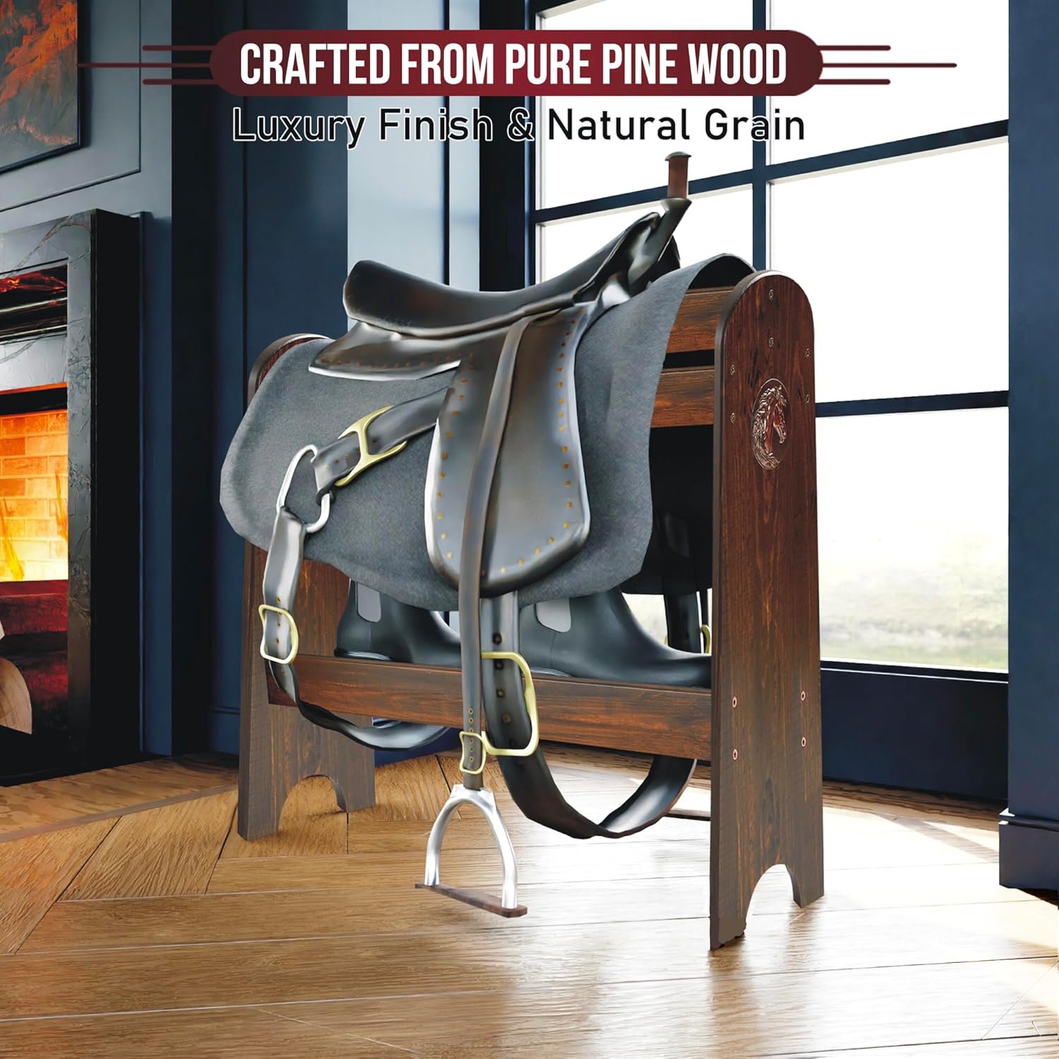 Pine Wood Saddle Rack – Ideal Saddle Stand for Western Horse Gear and Horse Tack Organizers, Suitable for Displaying Trophy Tack at Home – Walnut