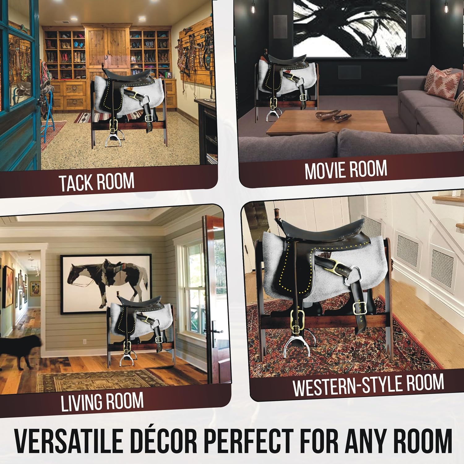 Stylish and Authentic Details: With a vibrant horse badge and natural wood grain finish, this horse saddle stand adds a touch of Western feeling to any room. It also functions as a versatile horse blanket rack, ideal for displaying your vintage or antique saddles and rounding out your equestrian accessories collection.
