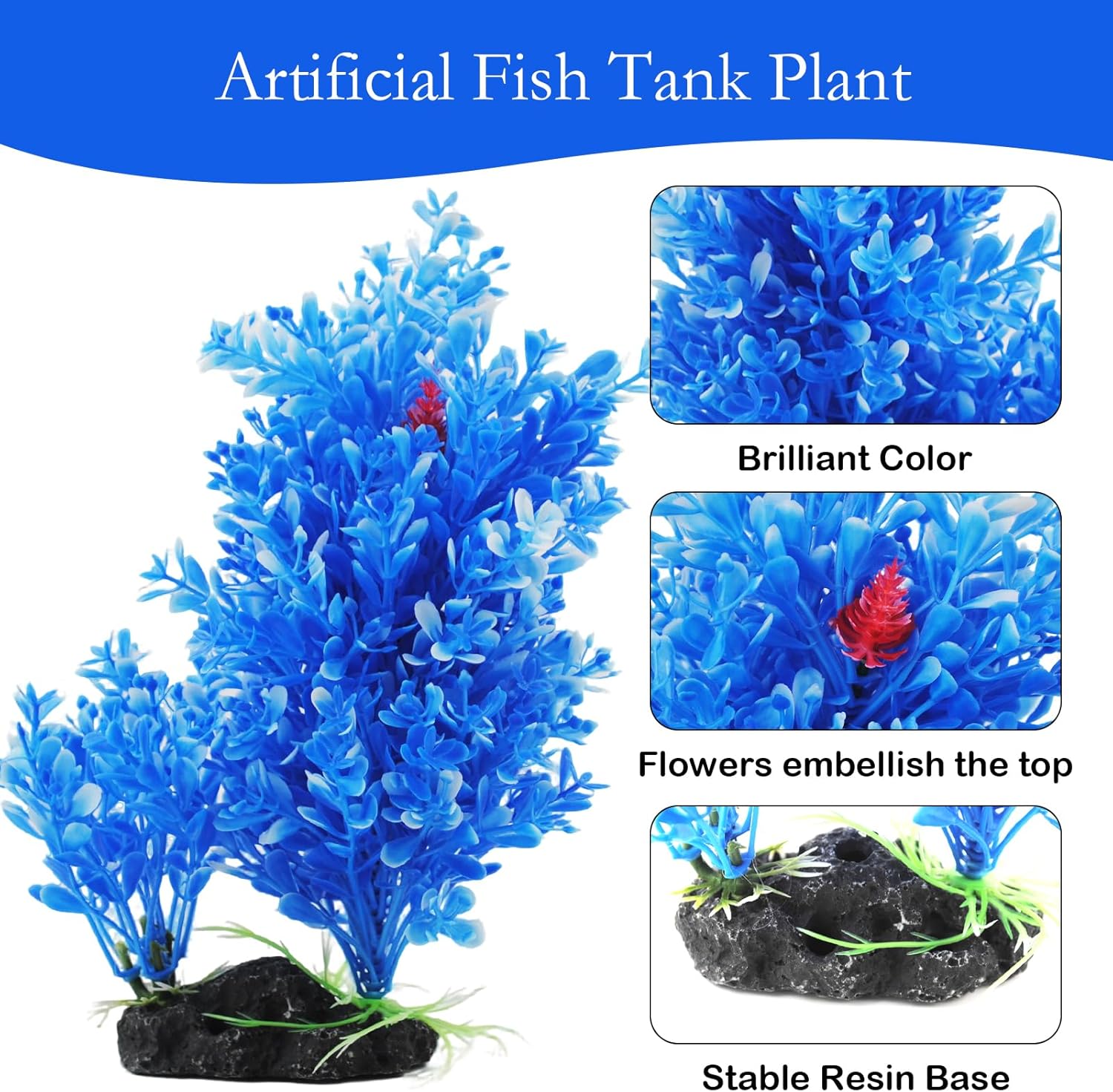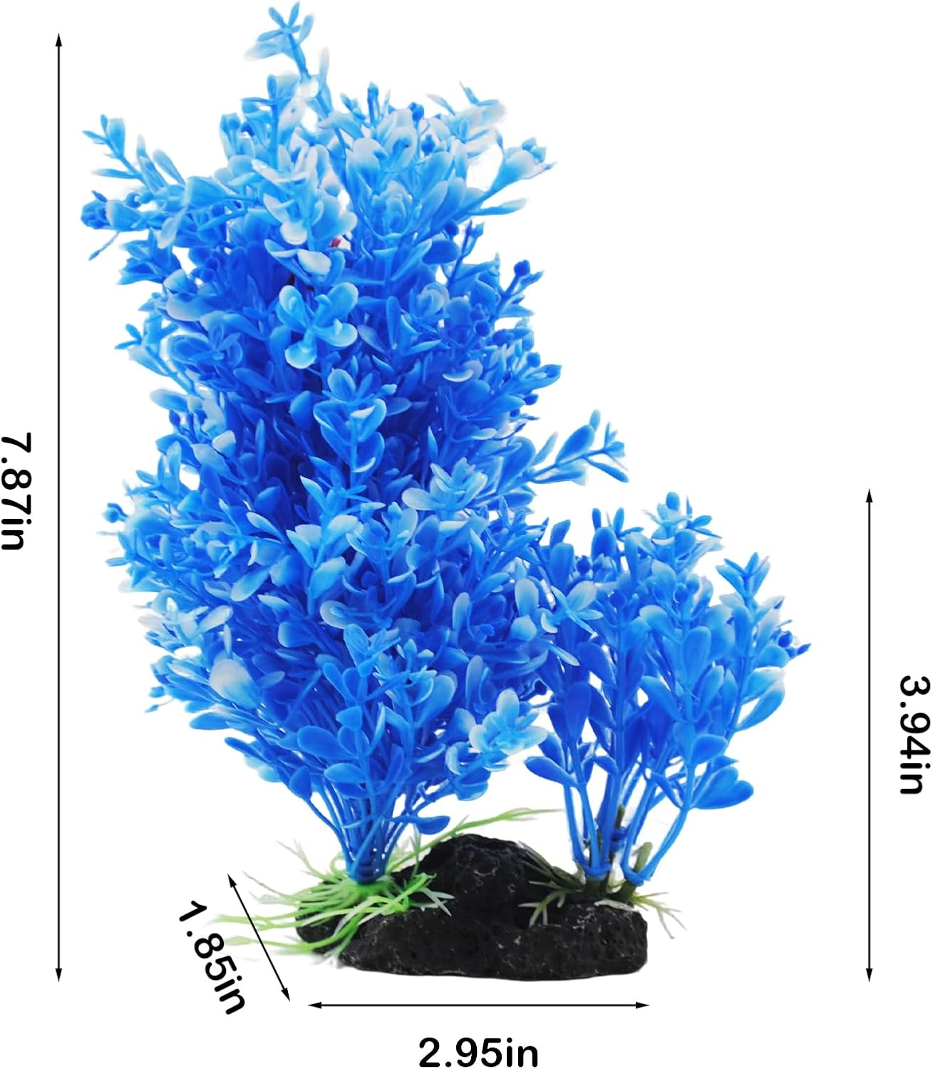 PINVNBY Artificial Plants for Betta Fish Tank,Plastic Aquarium Plant with Resin Base Realistic Goldfish Tank Aquatic Plants Decoration(Blue)