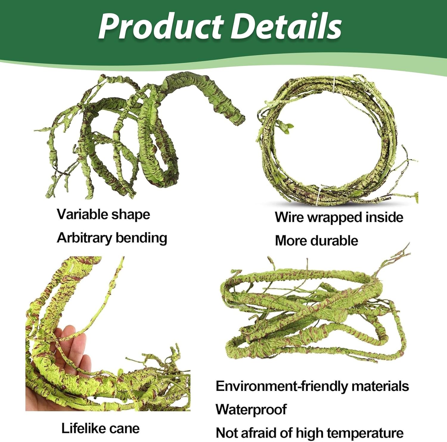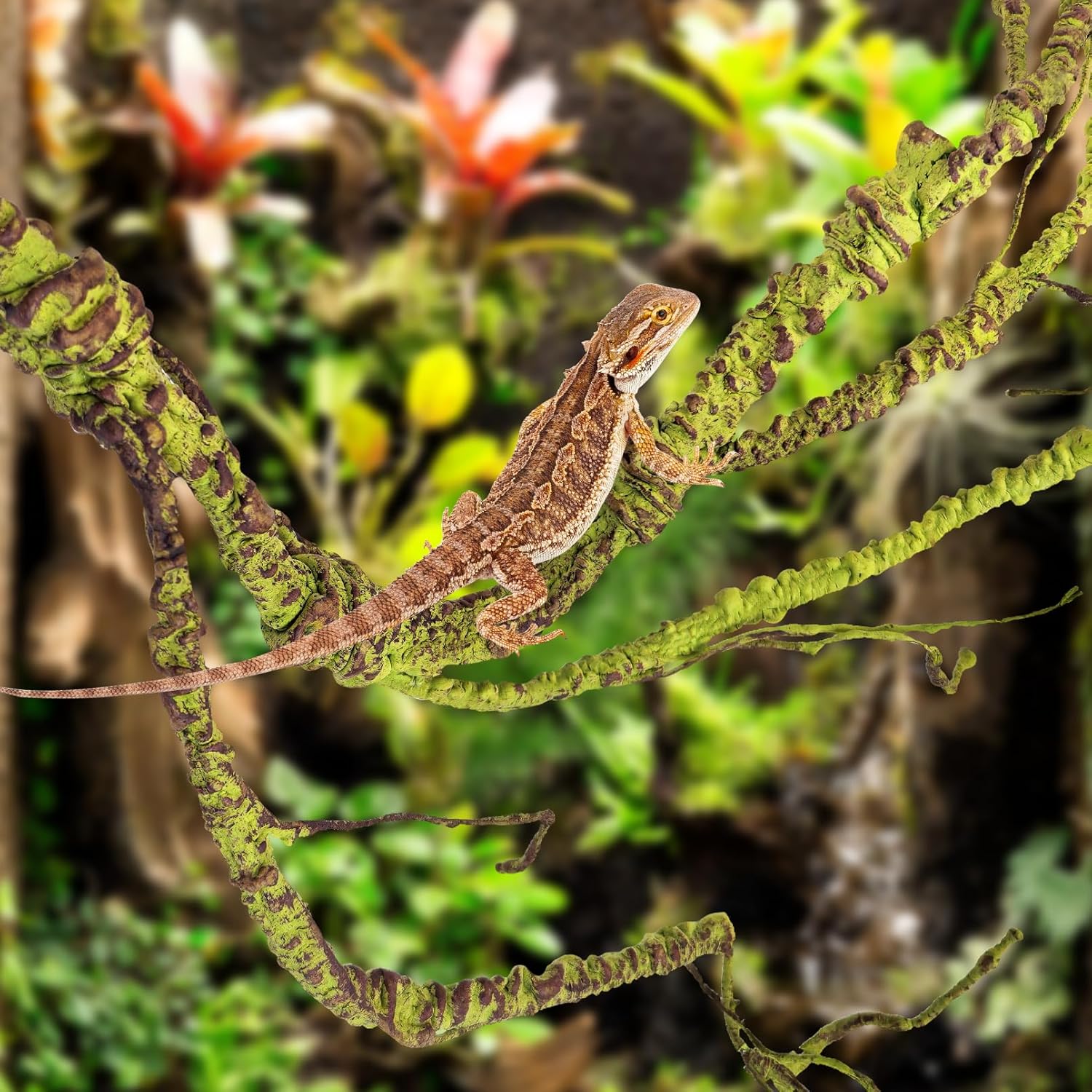 They are designed to mimic the natural branches in the jungle and provide a realistic and stimulating environment for your petThe textured surfaces of these obese reptile vines provide good grip, allowing the reptiles to manipulate and exercise muscles while mimicking their natural habitat, promoting physical activityThese crawling vines are not only functional, but also beautiful. Their vibrant green color adds a touch of natural beauty to your terrarium and enhances its visual appeal