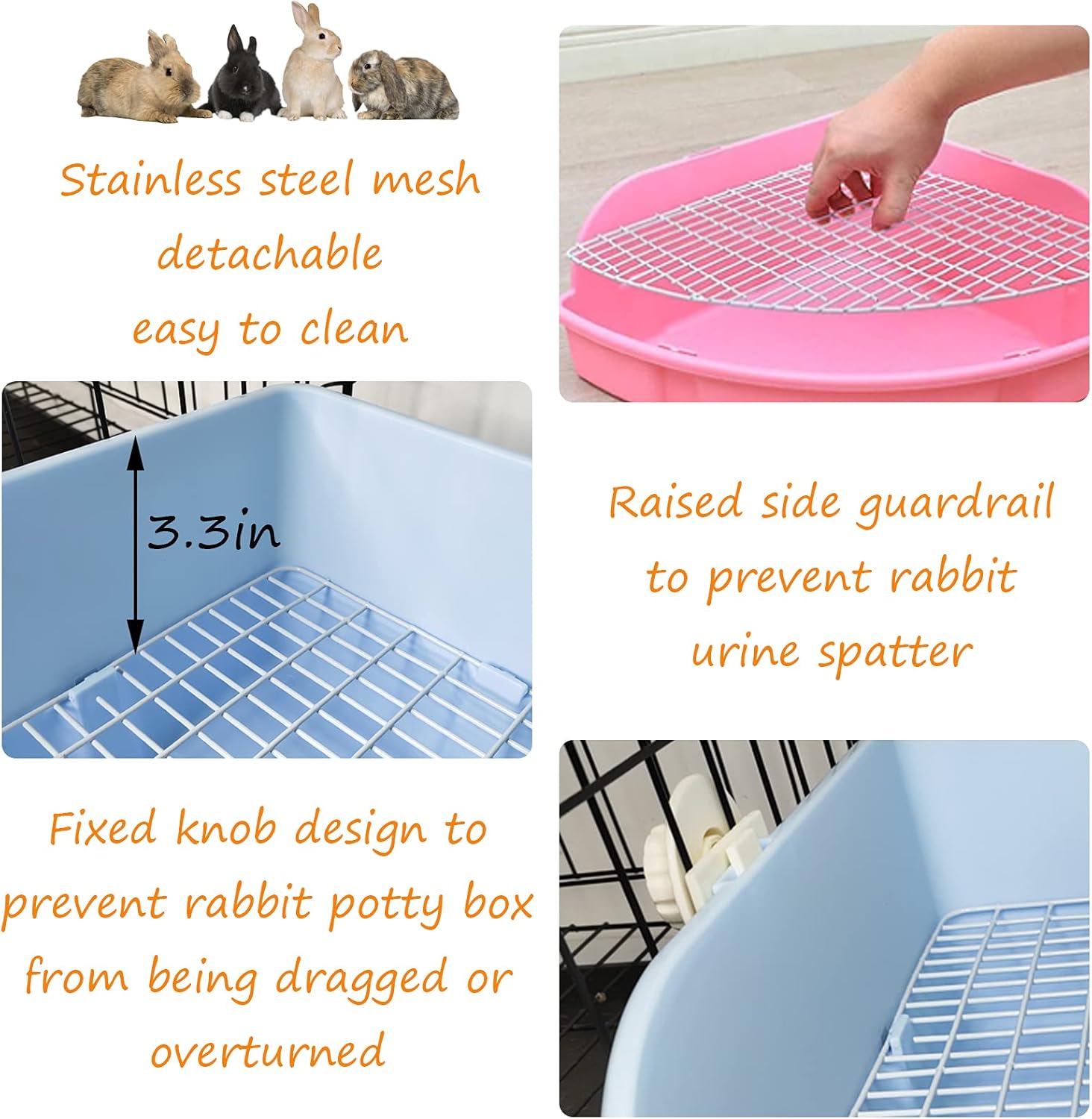 High Quality Material:Our rabbit litter box is made of high quality plastic, strong, durable and easy to clean. Soft plastic mesh improves foot comfort. Reinforced bottom design can withstand the relatively large size of adult small animals