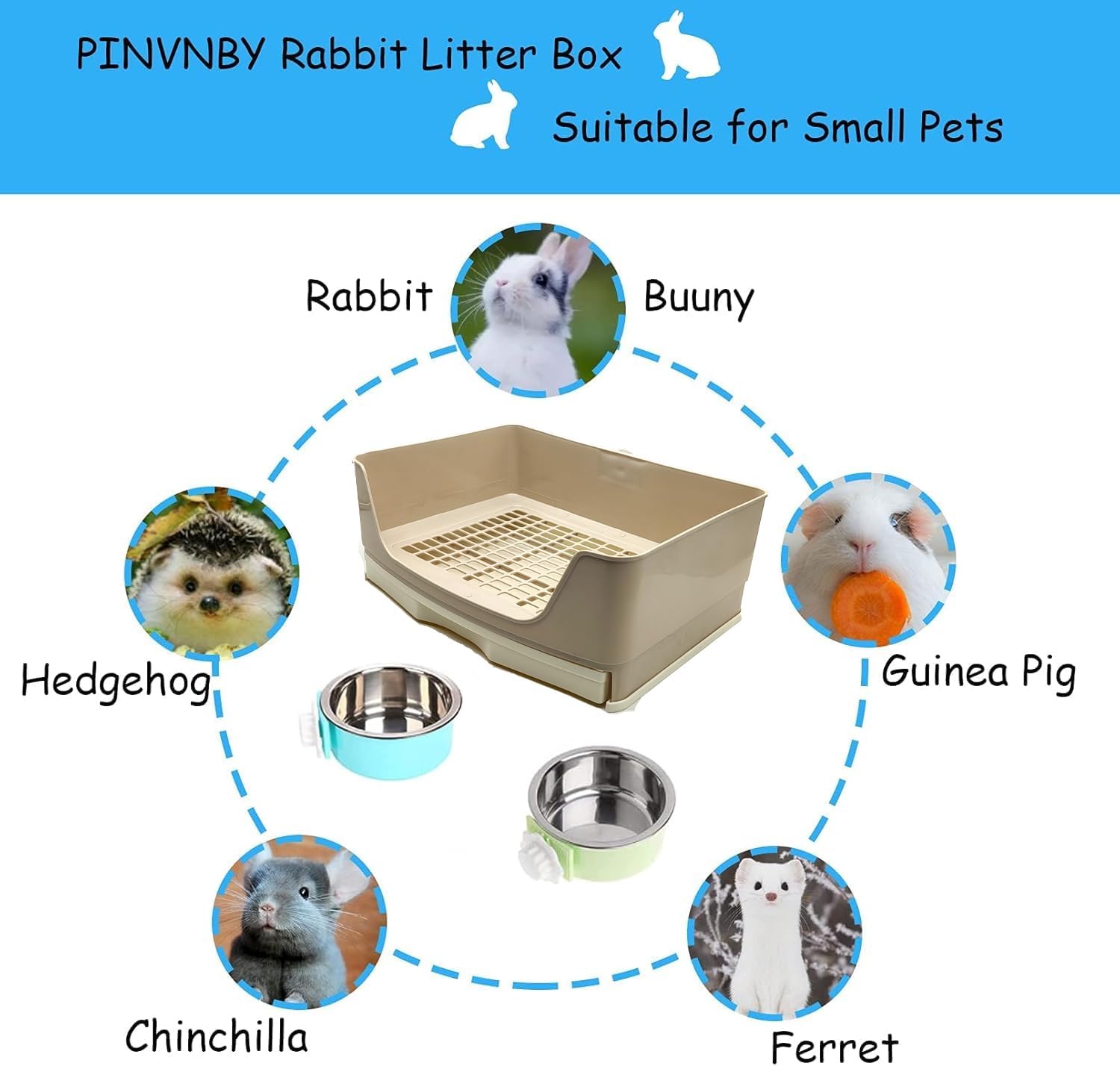 PINVNBY Rabbit Corner Litter Box with Drawer for Cage Small Animal Litter Pan Hanging Pet Feed Bowls Cage Potty Trainer Pet Toilet for Rabbit Bunny Guinea Pigs Chinchilla Ferret