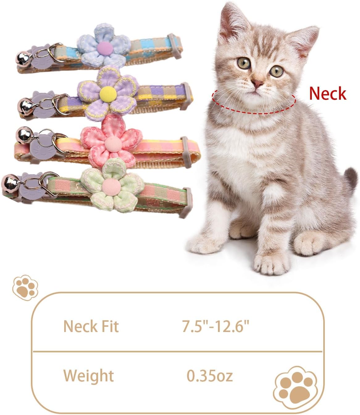 Customers find the cat collar cute and easy to adjust and unlatch. The size receives mixed feedback, with some saying the flower is the right size while others find it too big for their kittens. The durability is concerning, with one customer reporting that the bells fall off easily.
