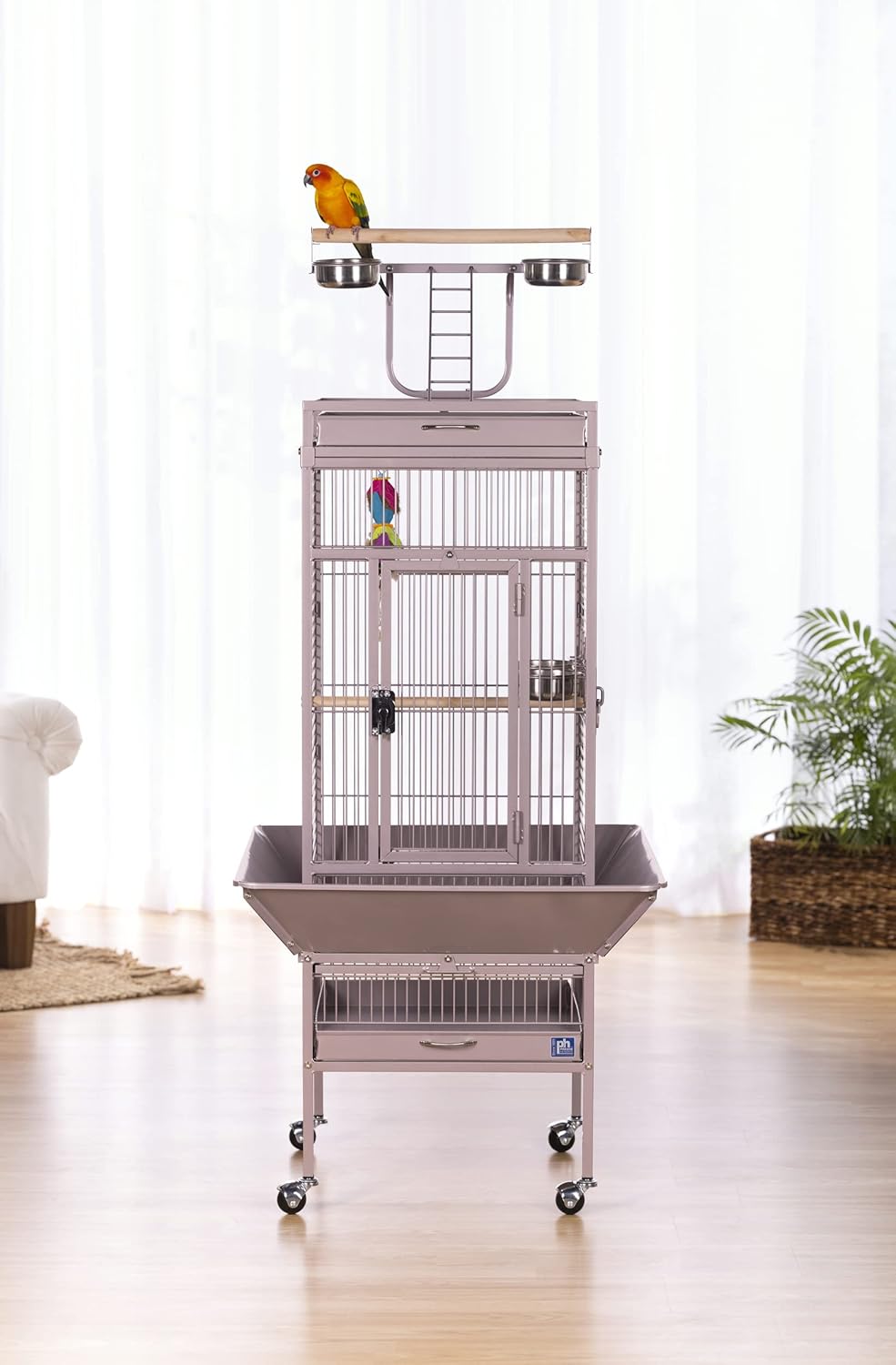 A great showcase for your birds! Easy to assemble, and cage stand base features integrated storage shelf and easy-rolling casters