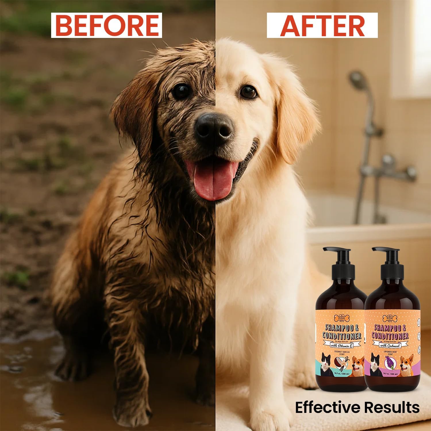 Pamper your pet with our carefully crafted luxurious dog shampoo and conditioner. This all-in-one grooming solution offers deep hydration, gentle cleansing, and noticeable shine perfect for pets with itchy skin relief needs or dry, sensitive coats. Our formula goes beyond basic cleaning by acting as a dog dandruff shampoo, dog shampoo and conditioner shedding control solution. Say goodbye to dryness and flakiness while welcoming a soft, healthy, and deodorized coat. With ingredients like Provitamin B5, Vitamin E, and a coconut-based cleanser, this dog bath soap alternative nourishes fur and maintains the skin’s natural balance. It’s a must have for dogs prone to itchy paws, irritation, or discomfort. Whether you’re looking for a gentle dog wash, a natural dog shampoo and conditioner, or a full on dog spa experience at home, this product delivers. It’s perfect for homes with multiple pets, including those needing a doggie shampoo or Cats shampoo option. It’s cruelty-free, hypoallergenic, and effective. Add our 2-in-1 shampoo to your routine and experience the benefits trusted by thousands of pet parents If you are searching for the best in dog shampoos & conditioner or cat shampoos & conditioner . Our P.O.M shampoo and conditioner for dogs and cats is your solution.