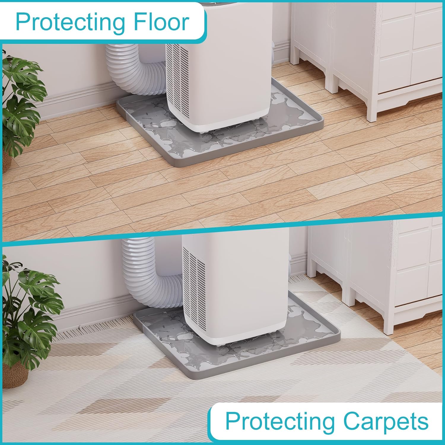 Specifically designed for portable AC units, collecting condensation water to prevent floor damage, keeping your space dry and tidy.