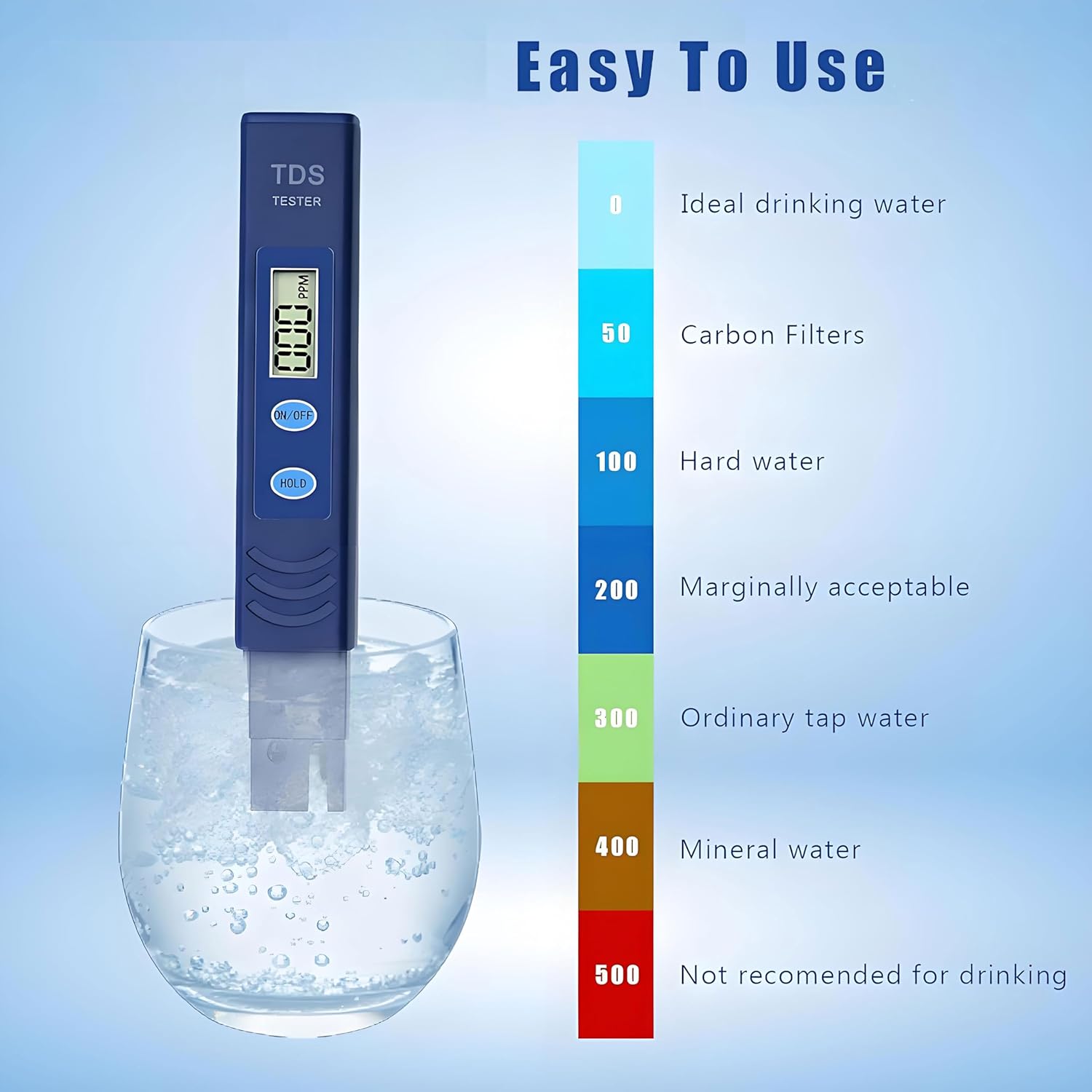FACTORY-CALIBRATED & AUTHORITY-REFERENCED:Comes pre-calibrated for out-of-the-box use, eliminating manual calibration and saving time. Note: The World Health Organization (WHO) and US Environmental Protection Agency (EPA) recommend drinking water TDS levels ≤ 500 mg/L (1 mg/L = 1 ppm). This tester provides measured TDS data (ppm) only—results should be compared to reference charts for water quality grading. TDS is a comprehensive index and does not represent water hardness or absolute purity.