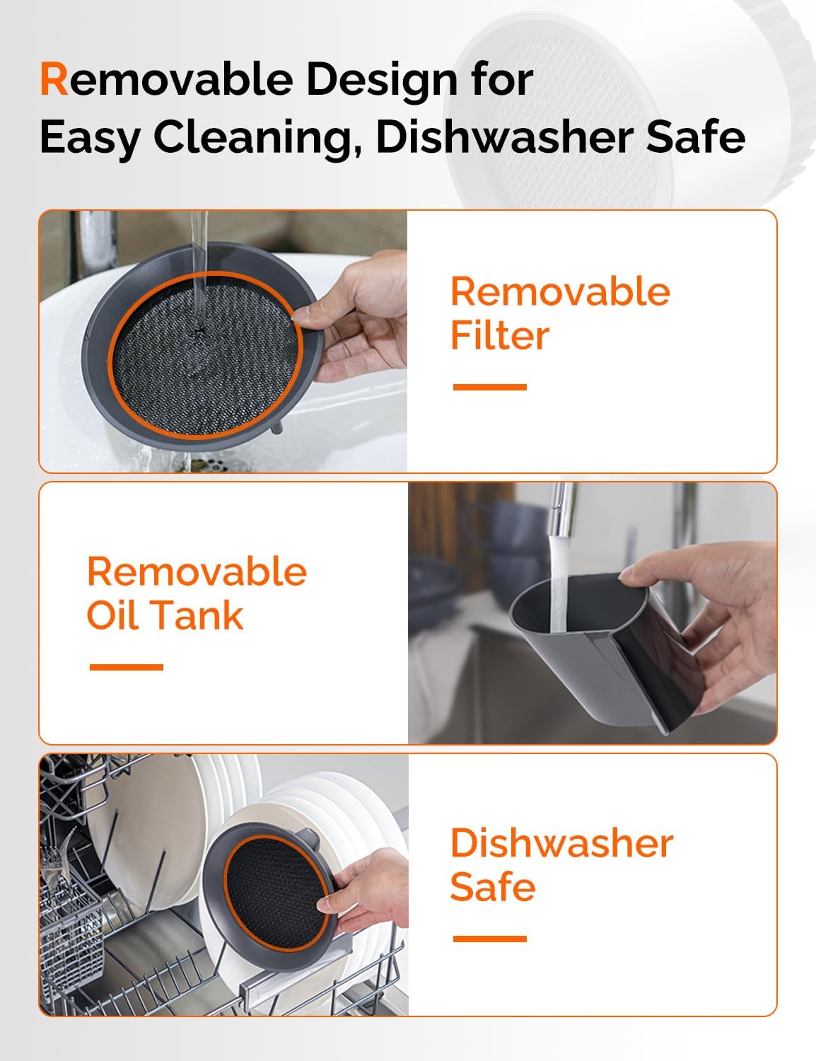 Detachable dual carbon filters and a large oil cup make cleaning simple. Spend less time scrubbing and more time enjoying your meals.