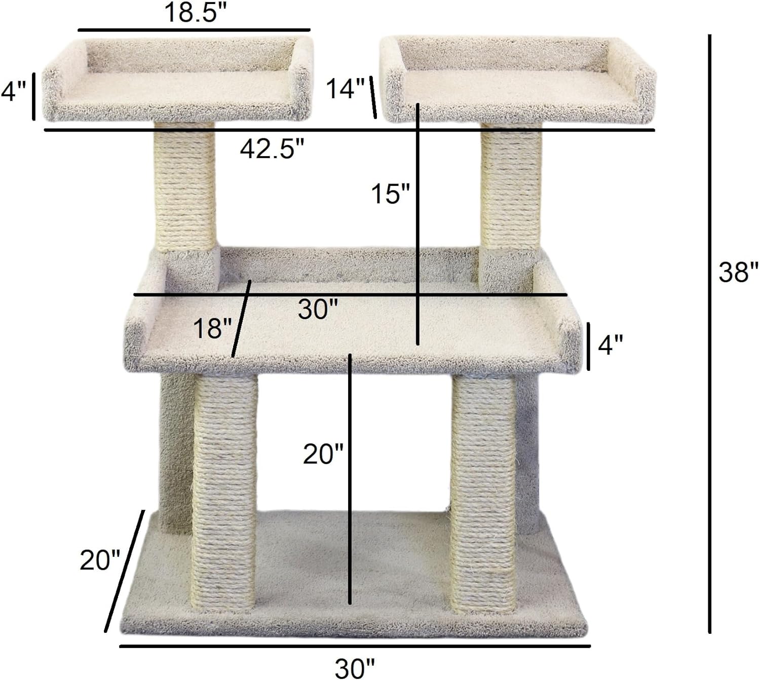 Made in the USA with Premium Materials — Solid wood frame, thick household-grade plush carpet, and tightly wound unoiled sisal rope ensure durability, stability, and long-lasting enjoyment for your large or multi-cat household.
