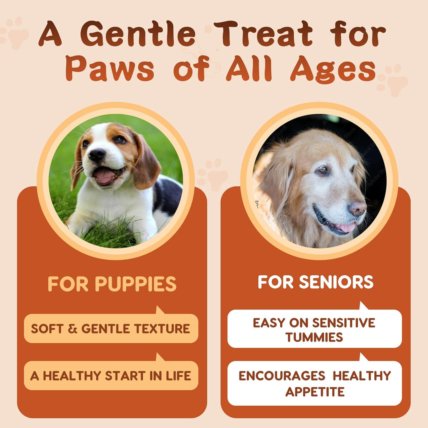 This dog probiotics soft chews are tailored for dogs of all ages, from puppies to adulthood, eliminating concerns about chewing difficulties due to age. With a low water content (less than 8%), our probiotics for dogs chews are adored by all pets, including picky eaters and senior canine companions.
