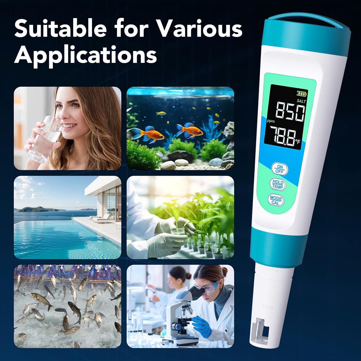 Very practical and easy to use. The salt, temperature, and TDS readings are accurate and clearly displayed on the screen. It helped me keep my pool water balanced without any complications. Also ideal for a spa or aquarium, an excellent purchase.