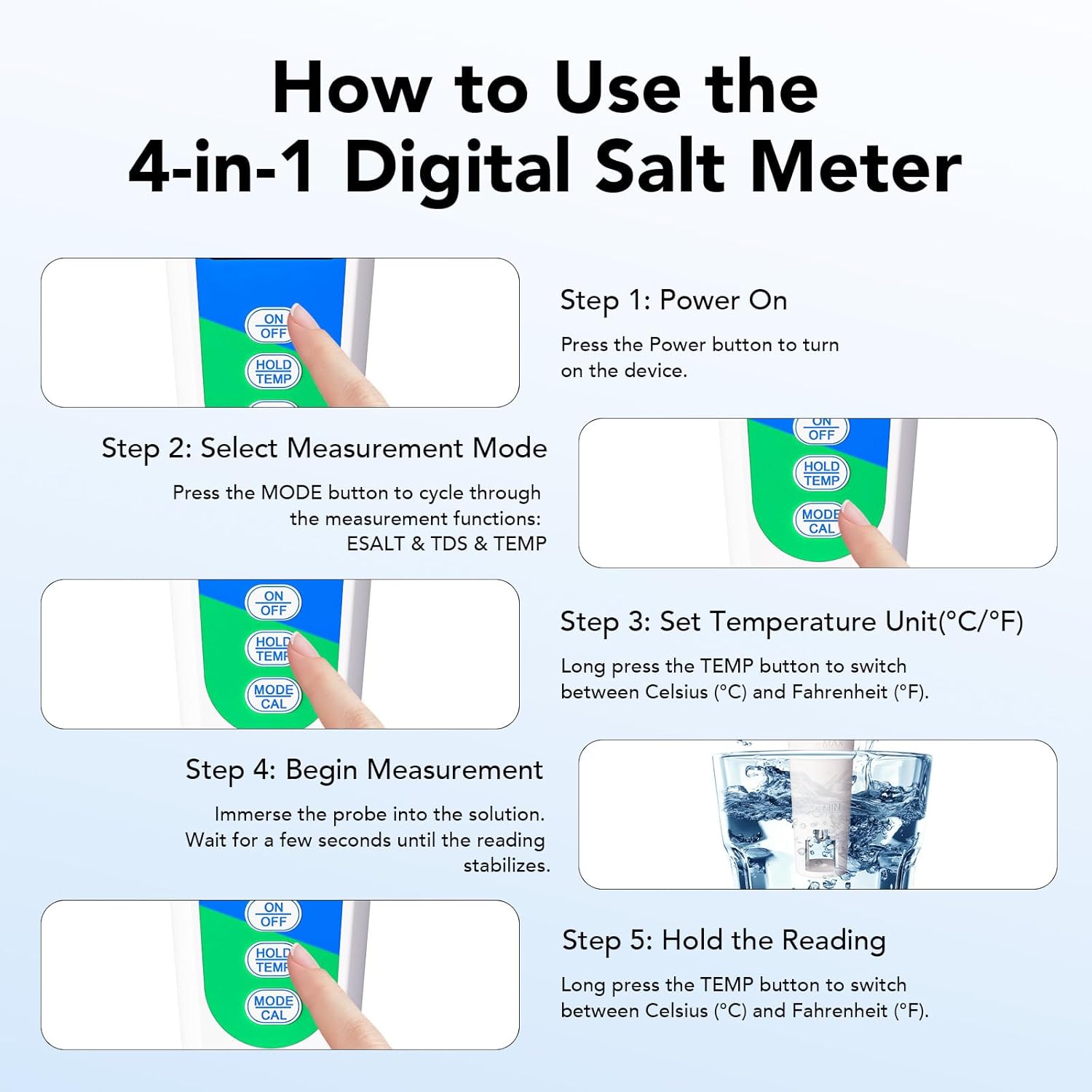 I bought the DZDarren 4-in-1 salinity tester for my pool, and it works great. It accurately measures salt, TDS, EC, and temperature all in one device. Itâs fast, easy to use, and the screen is clear to read. A very handy tool to keep the water in perfect condition.