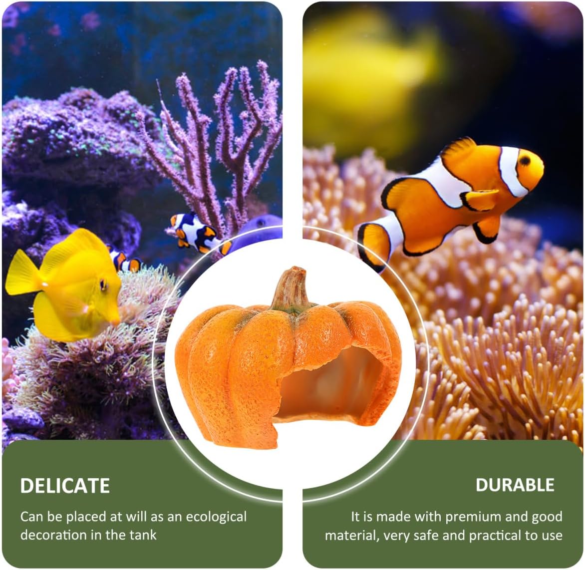 Pumpkin Aquarium Ornaments, Fish Tank Decorations Tortoise Hideouts Hamster Lizard Reptile Hide House for Table Decor