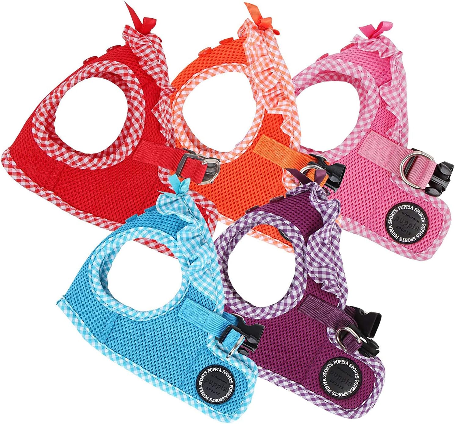 Puppia harness vests are our harness brand of choice. They are high quality, fit well and offer many colors and attractive patterns. Most importantly, every step-in harness vest offers several safe closure methods on each harness: strong Velcro main closure on the back, reinforced with a well made plastic clip and double D-rings into which to hook the leash. They may cost a little more than other look-alikes (like Voyager), but fit so much better. Because this step-in style shifts pressure on the chest rather than the neck, it is an healthier option that wonât cause damage to a fragile trachea. Our 8 lb. Maltese wears a size medium which fits perfectly. The Vivian style with the gingham ruffles is very cute & gets lots of compliments. We own this style in several different colors (pink, red & turquoise) as well as this stunning one in purple.
