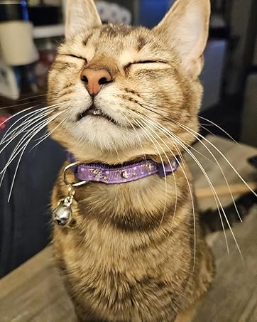 Dressed the cats with style this recent holiday season. Collars are well-made and came nicely packaged inside red drawstring pouch as well. I never use cat collars without the safety break-away feature and these are just right – not too easy or too hard to come apart. Will order more Pupteck cat collars again.