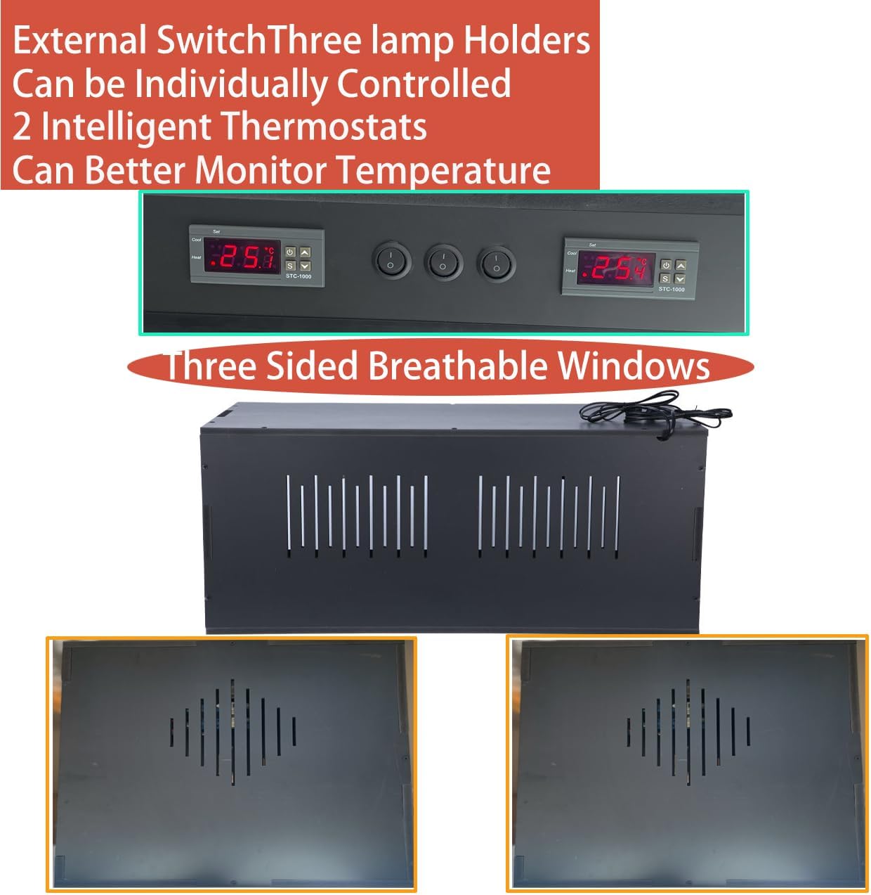 【Advanced Temperature Control】Equipped with Intelligent Thermostat,built-in bulb sockets and switches.Our terrarium accommodates various E27 bulbs for heating, lighting, and night illumination (Including 2 UVB heating bulbs). Installing the lights is a breeze, making it an ideal habitat for your reptiles
