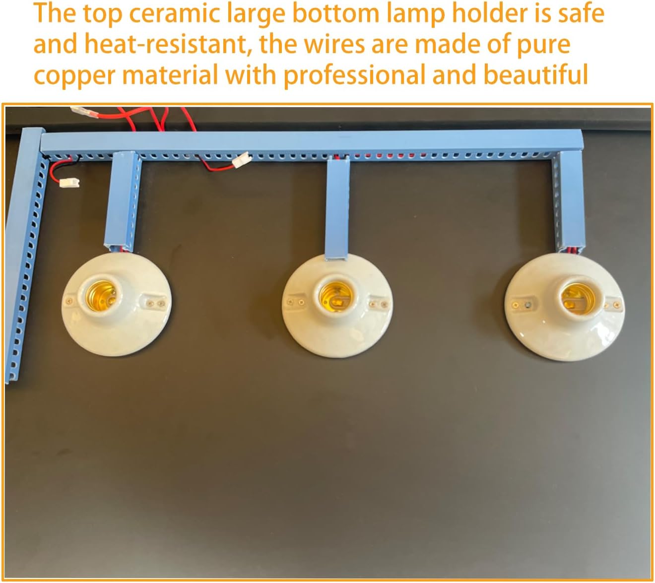 Three ceramic large bottom lamp sockets installed on the top panel, accommodates various E27 bulbs for heating, lighting, and night illumination.