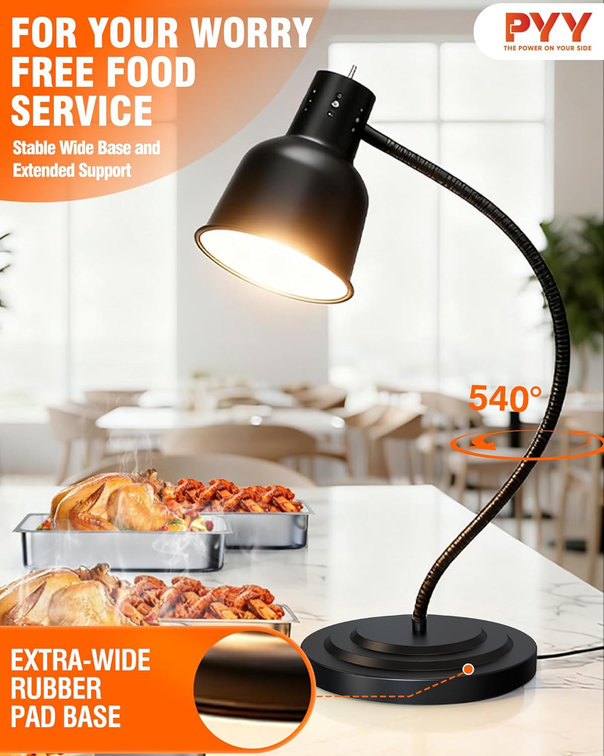 ETL‑CERTIFIED: This food heat lamp meets safety standards with ETL certified bulbs and operates on 110V. PYY food warm lamps are perfect for professional kitchens, catering businesses, buffet setups and home kitchen cooking, which is compliance and reliability in various service environment