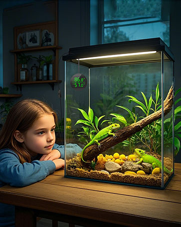 Clear LED Display: Equipped with a vibrant LED HD display, our digital thermometer for reptile tank offers exceptional visibility in both bright light and dark conditions, making it easy to monitor your pet’s habitat at any time