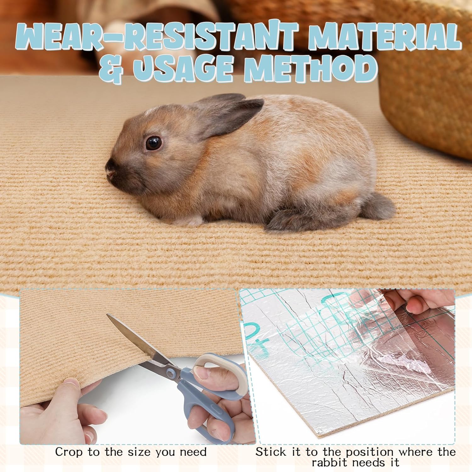 Trimmable Rabbit Scratch Pad:Our mat can be cut,offering great flexibility in use.You can use scissors to cut the rabbit scratch mat into the size you want and place it in specific areas such as cages,floors,sleeping nests,or stairs to meet different space usage needs