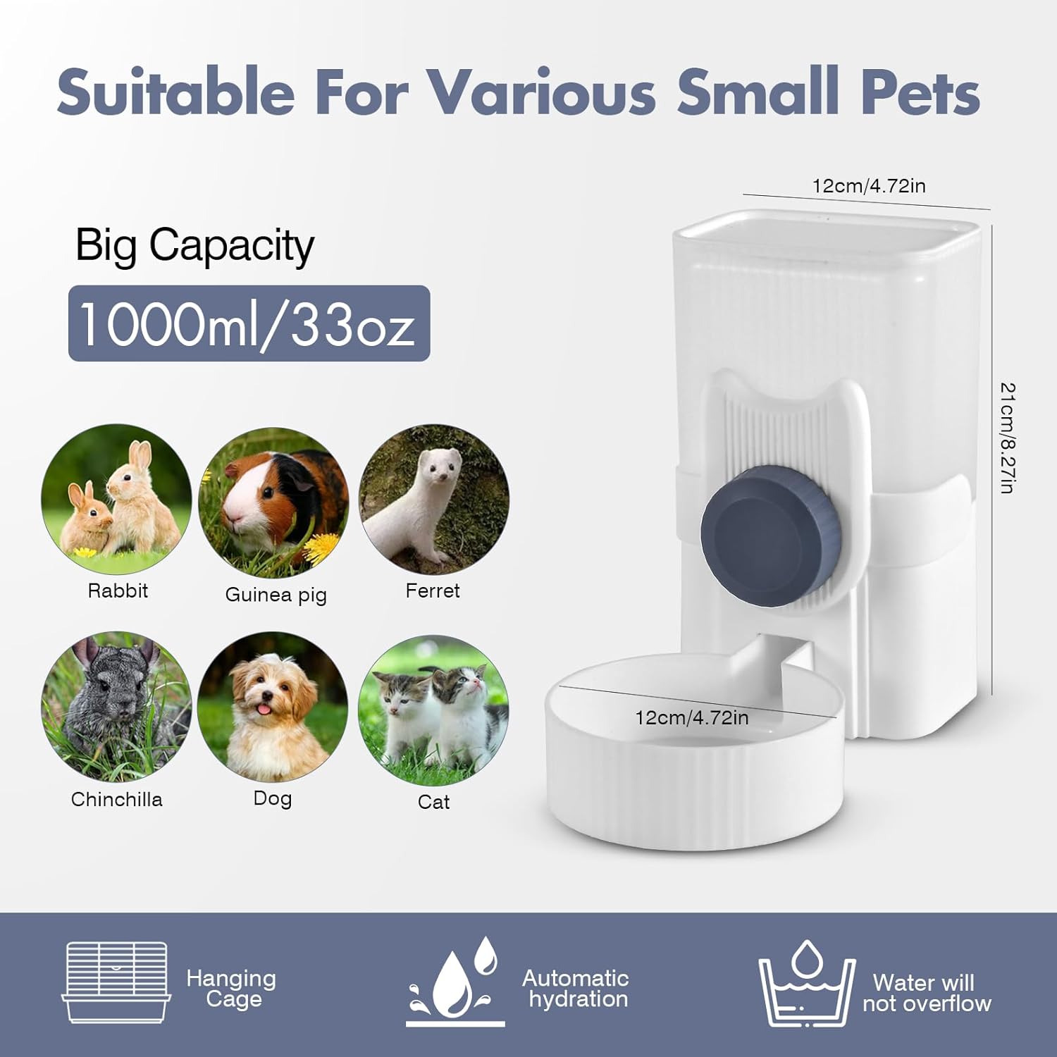 Rabbit Water Bottles 33oz Hamster Water Bottle Hanging Guinea Pig Water Dispenser No Drip Bunny Supplies for Small Pet Animal