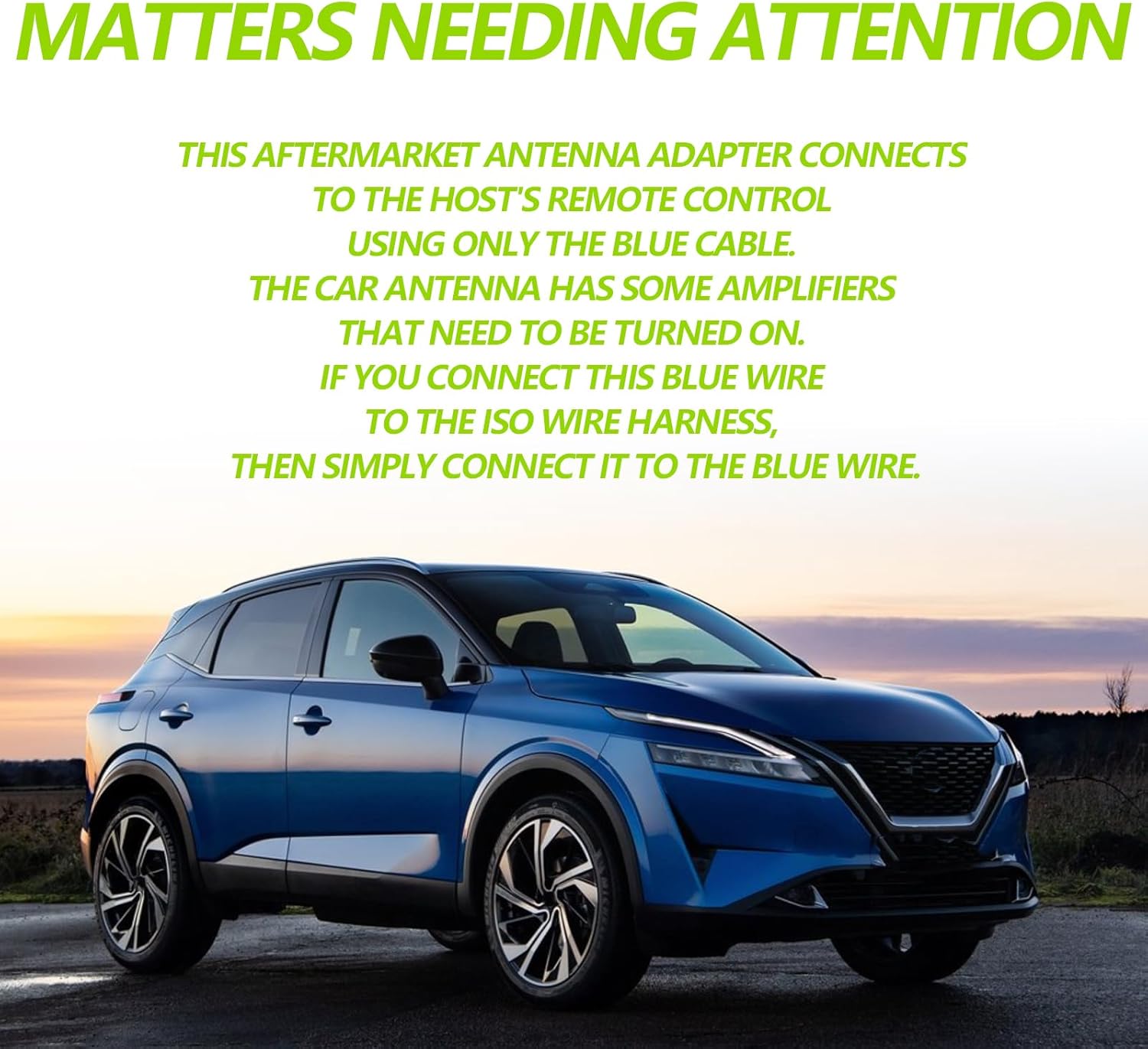 Package Included: 1 x Car Radio Antenna Cable, 1x16PCS Wire Harness Butt Connectors. NOTE: This antenna adapter only uses the blue wire to connect to the remote on of the main unit.