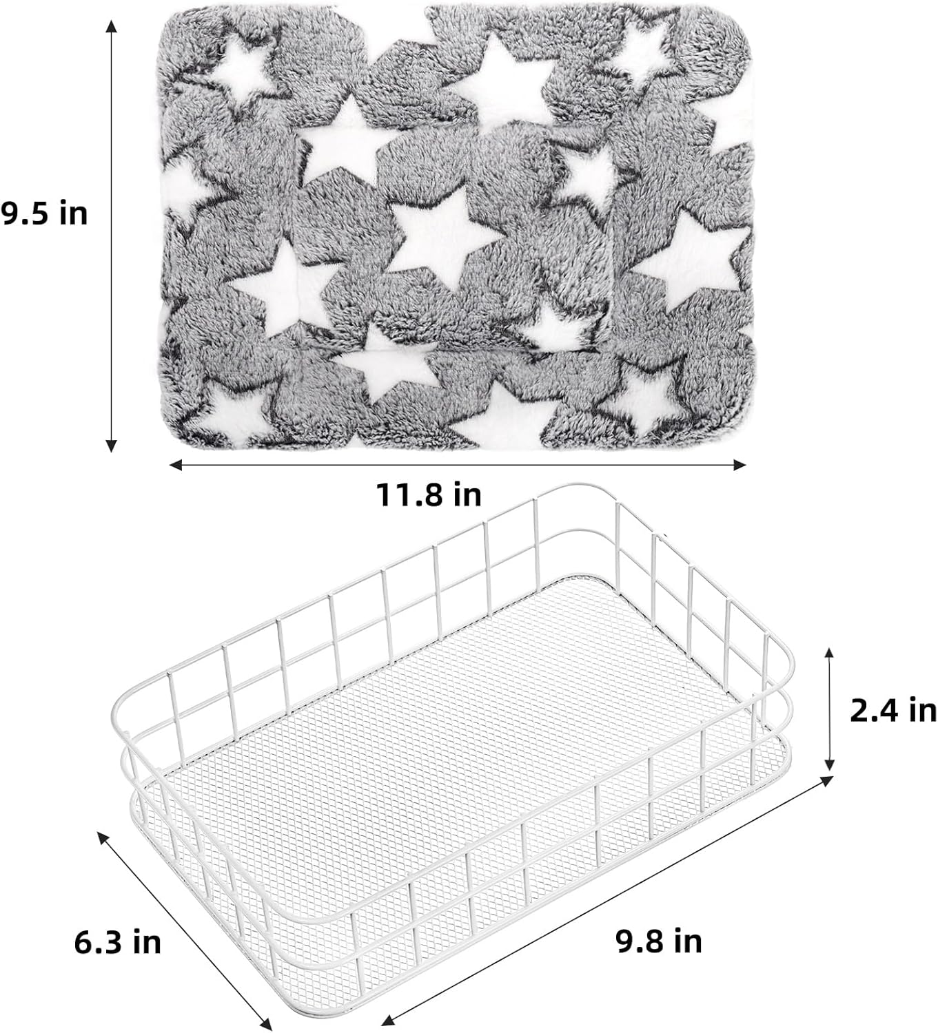 Package Detail: Including metal rat cage with liner bedding, a complete set to meet your small animal needs of daily activities. Cage measures 9.8”L x 6.3”W x 2.4”H.