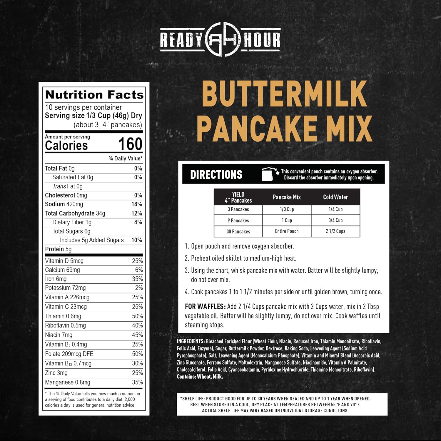 Ready Hour Buttermilk Pancake Mix Case Pack – 50 Servings (5 Pouches) – Emergency Breakfast Supply, Long-Term Food Storage, Prepper Pantry Essentials, Shelf-Stable Breakfast Mix