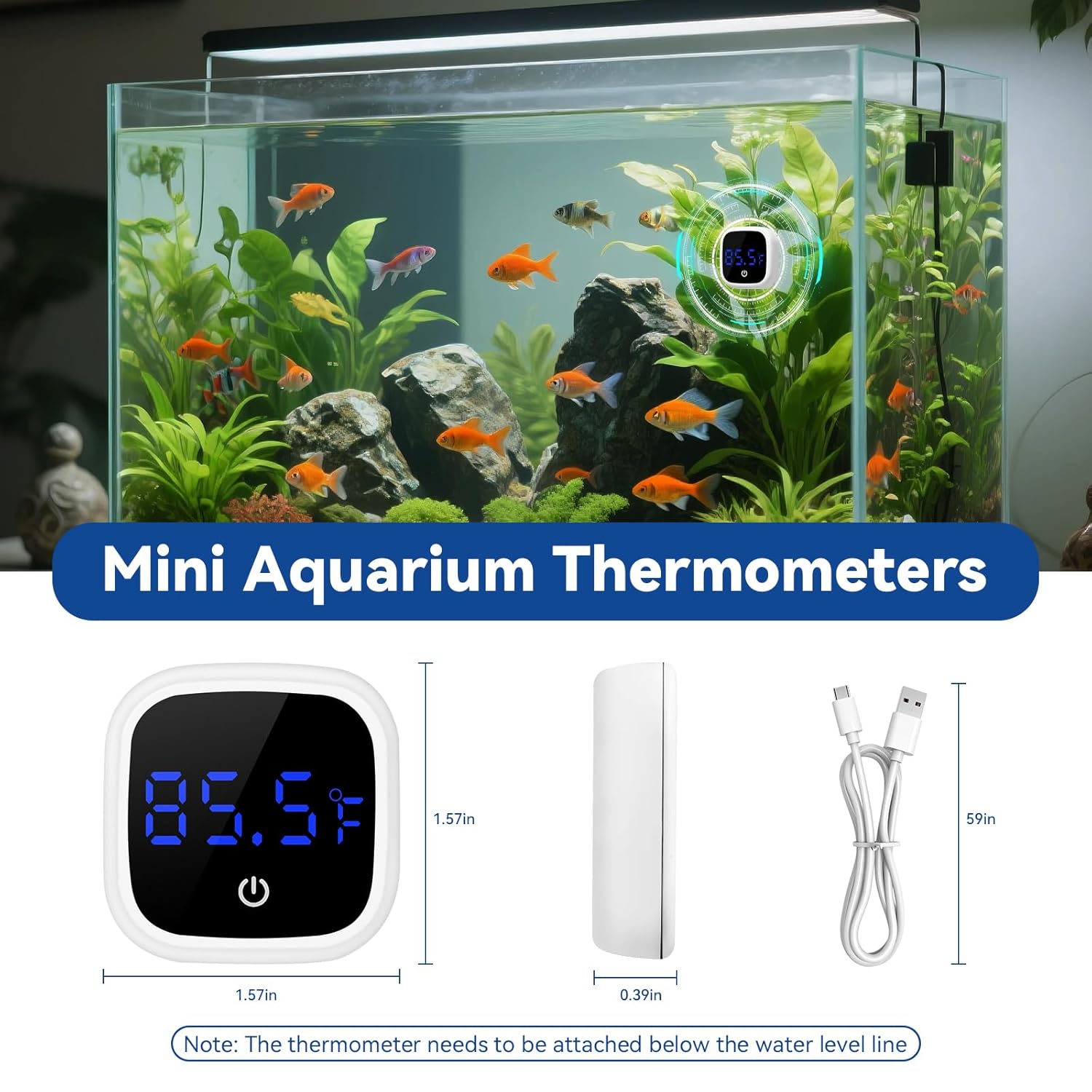This rechargeable digital aquarium thermometer is a great little gadget and I was immediately impressed by how small and compact it is. This allows it to be placed discreetly on the outside of the tank. The LED display screen is very bright when you activate it (by touching it), making it incredibly easy to read the temperature at a glance, day or night. It also seems to be quite accurate, as I compared it to another thermometer and the readings were consistent. The rechargeable battery is a huge plus, adding to the value by saving you the hassle and cost of constantly buying new batteries.The thermometer is easy to install with its strong adhesive, and the ability to switch between Fahrenheit and Celsius is a nice feature. Itâs also suitable for a wide variety of tanks. However, my only concern is that for smaller tanks that I occasionally wash in the sink, there isn’t an easy way to remove the thermometer to prevent it from getting wet. This is a minor inconvenience, but it’s something to consider. Overall, this is a very useful and well-designed product that provides excellent value for its features and accuracy.