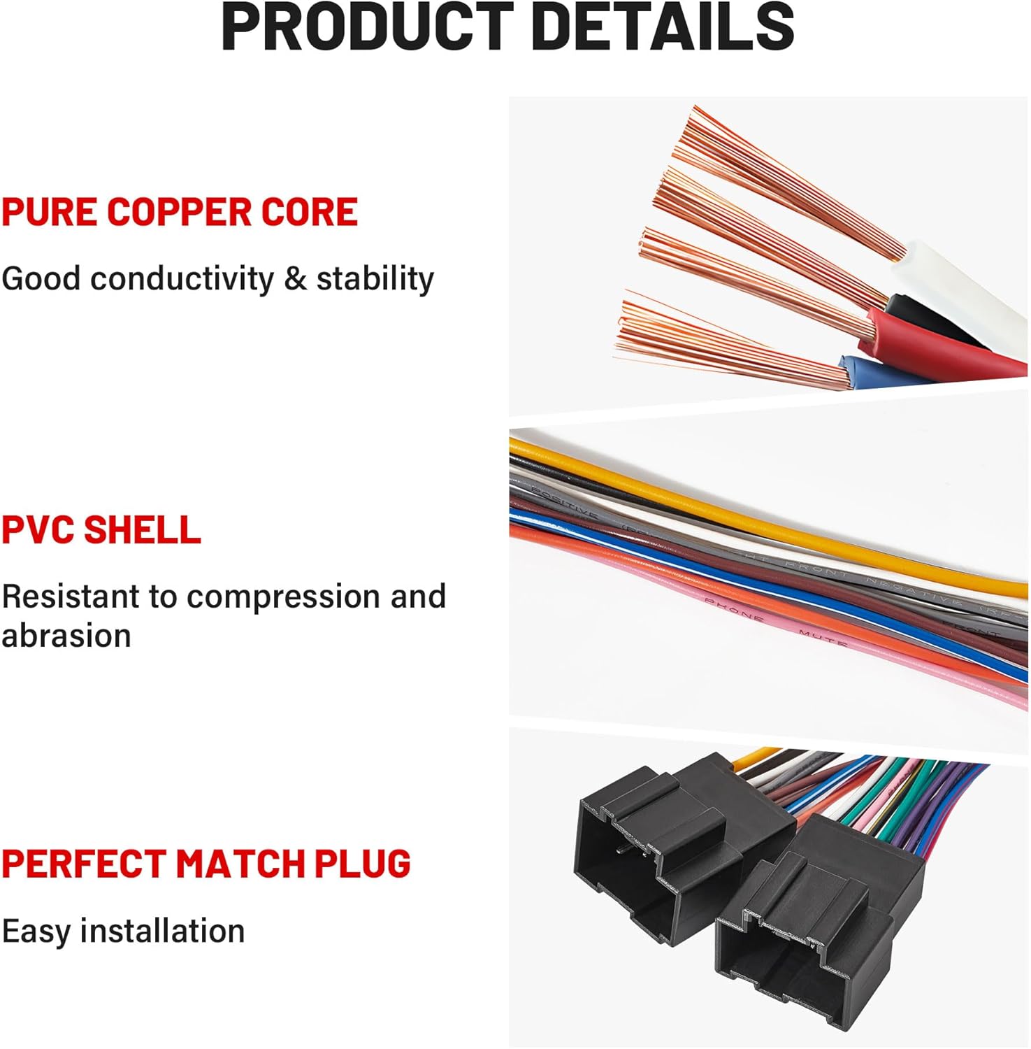 Easy to install: Pre-stripped wire harness makes installation more convenient; Car radio wire harness is made of premium quality; Professional copper core which makes excellent conductivity safe use and long lifespan