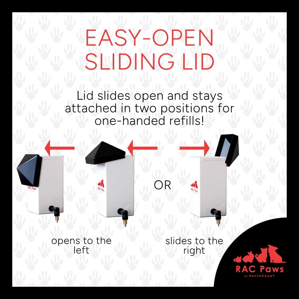 What’s in the Box: One 32oz(1L) BPA-free food-grade plastic waterer, flip-cap cover, chew-resistant No-Drip Brass Nozzle, universal fit spring clip, and instructions