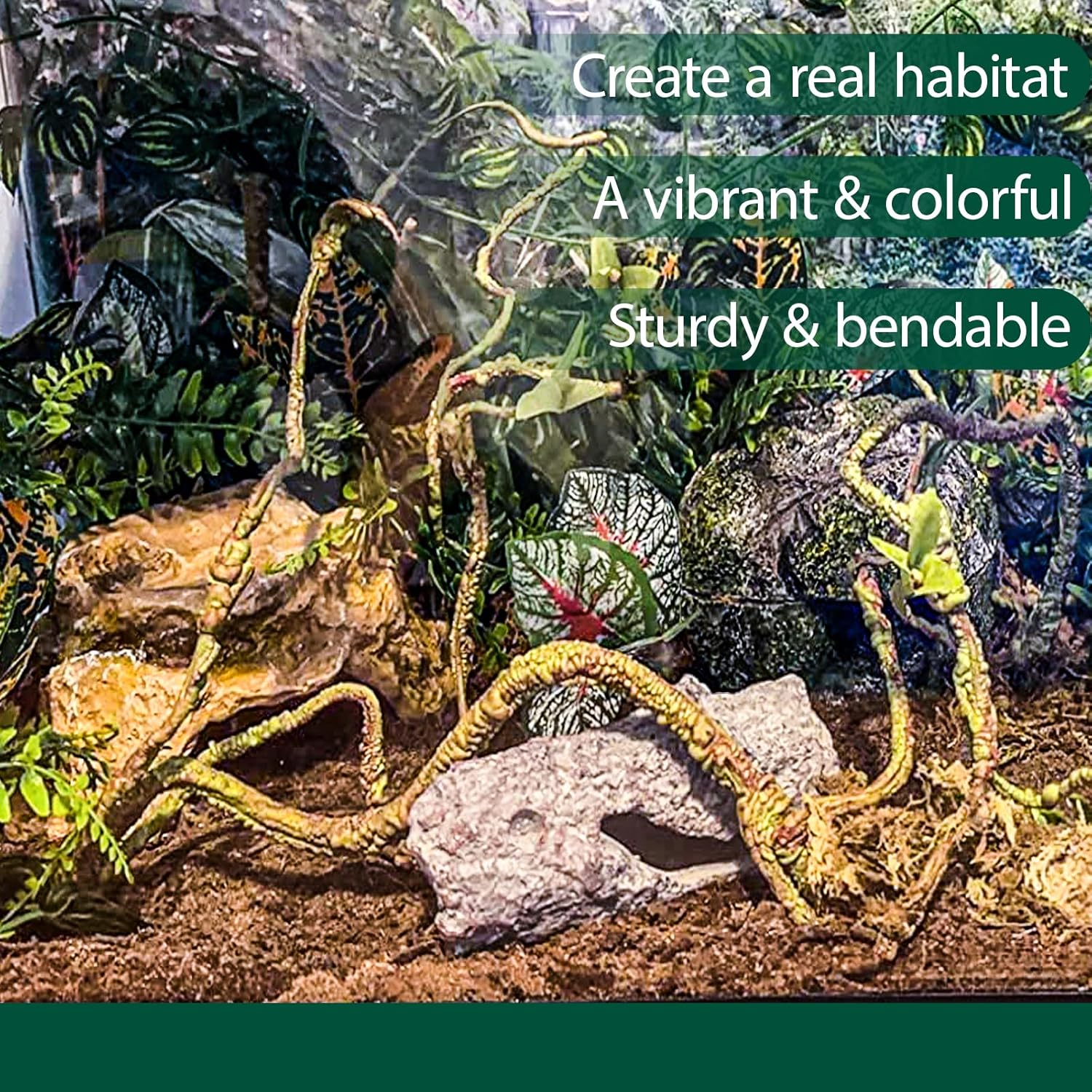 Repitle Plants for Bearded Dragon Tank Accessories, Terrarium Hanging Plants Artificial Leaves Reptile Decor Flexible Jungle Vine Tank Accessories for Gecko Ball Python Lizard Snake Chameleon