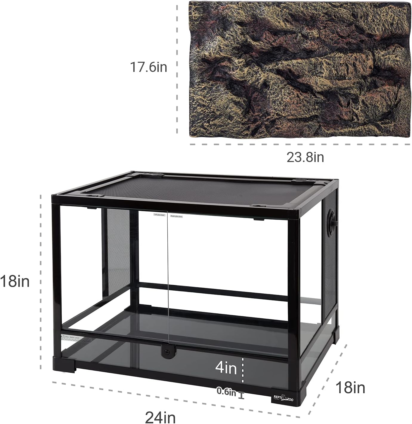 REPTI ZOO 34 Gallon Large Reptile Glass Terrarium Tank with Foam Backgrounds,Double Hinge Door with Screen Ventilation Reptile Terrarium 24″ x 18″ x 18″(Knock-Down)