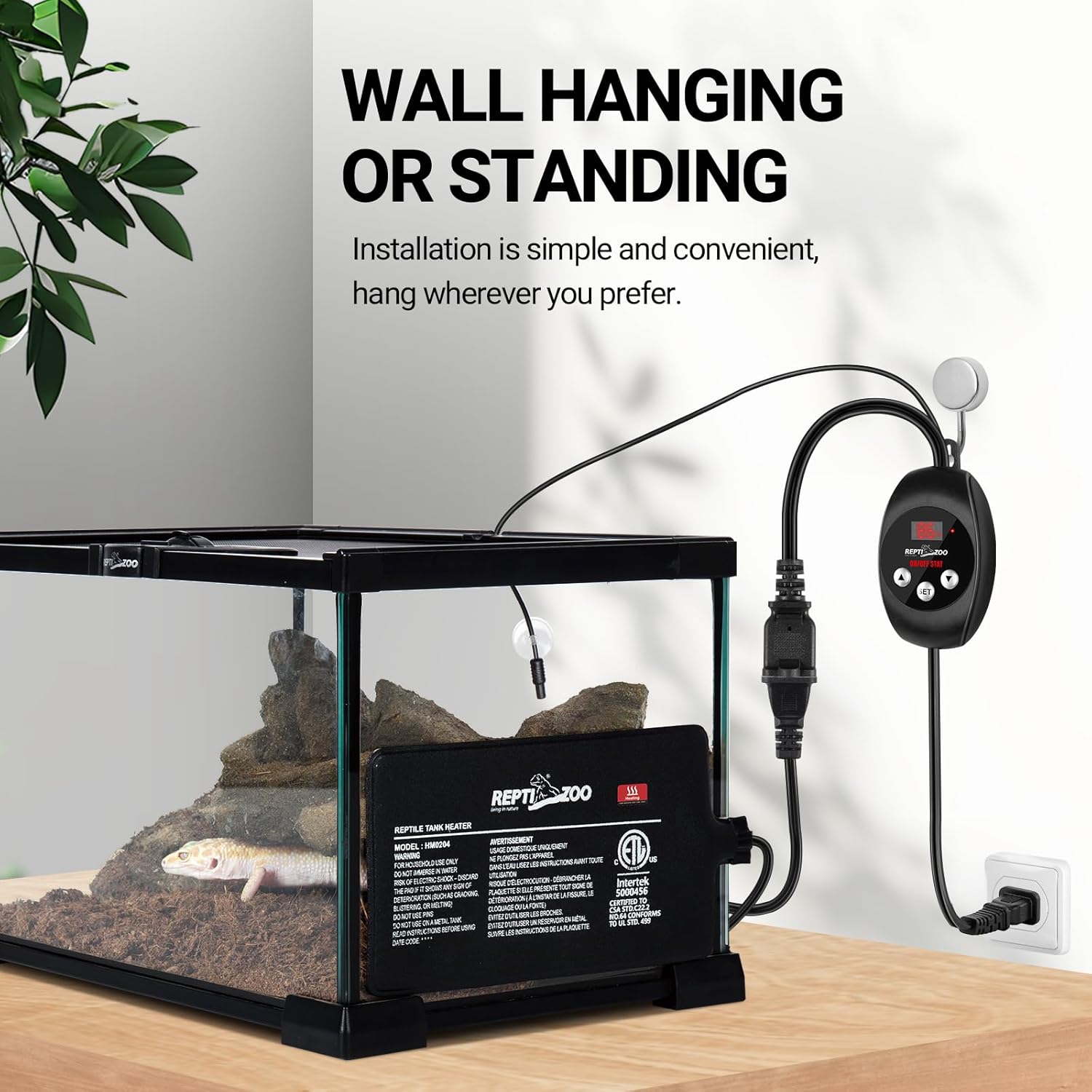 REPTI ZOO Reptile Thermostat Wide Range Temperature Controller Reptile Heat Pad Digital Thermostat Waterproof Seedling Heat Mat Thermostat for Turtles, Lizards, Frogs, Hermit Crabs, Snakes, Plants