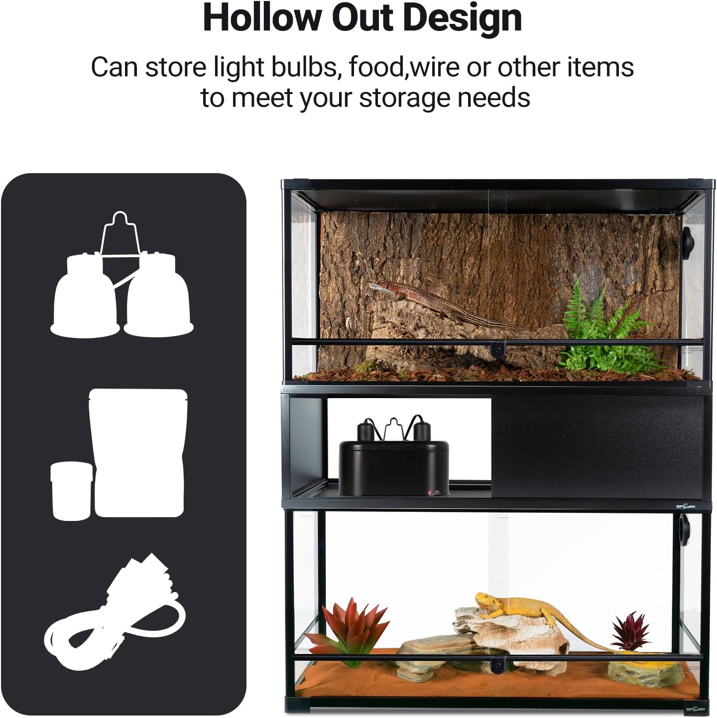 【Storage Space】: Hollow out design in the middle to meet your storage needs. It can be used to hide lights, food, or other things, if you put them on top of the water tank! Make breeding more convenient