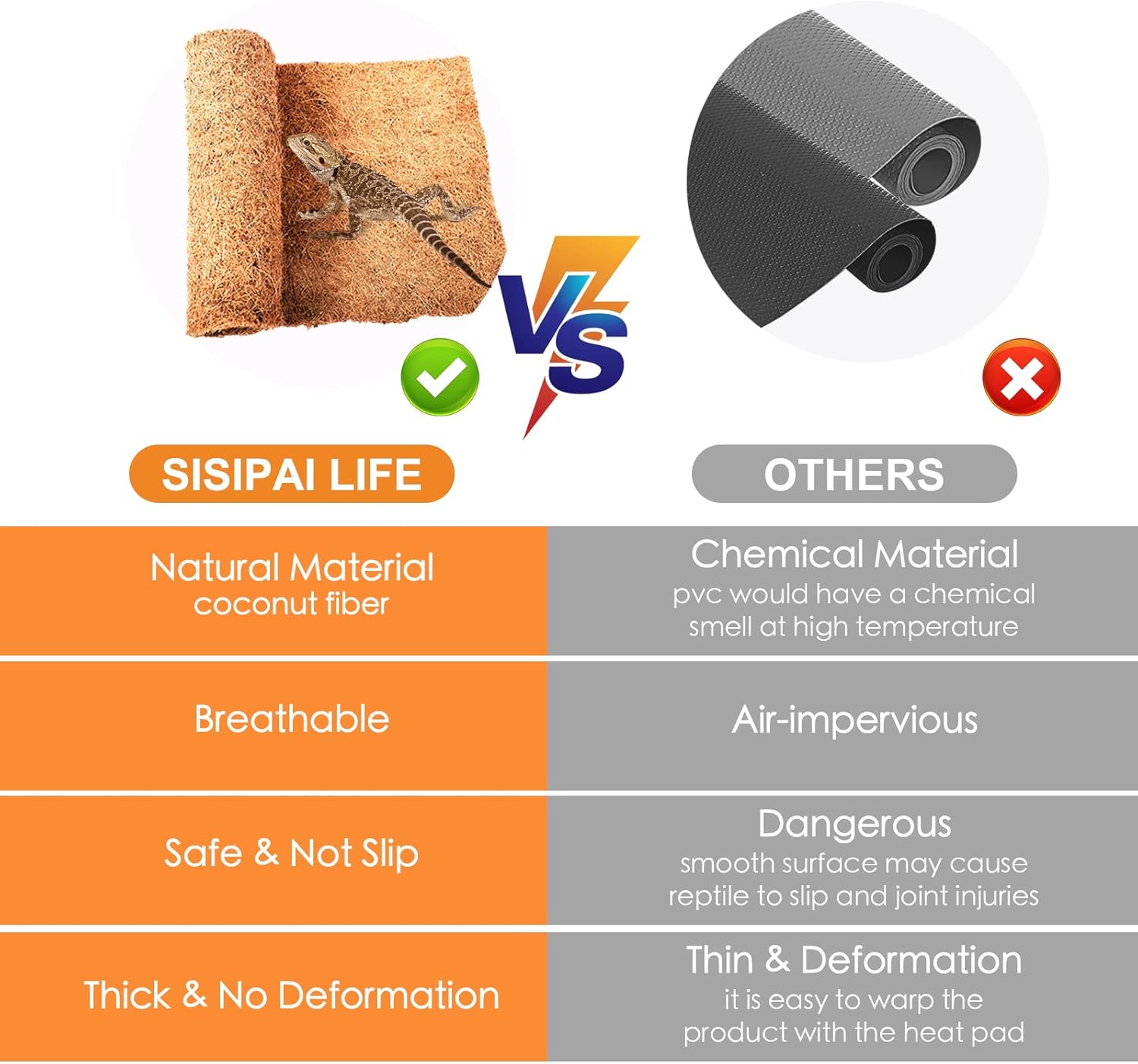 PROTECT YOUR PET & PROVIDE COMFORTABLE HABITAT: It can provide safe habitat and protects reptiles from moisture, dirt, and scratches. Lizard can sleep on mat to prevent ascites. Coconut substrates prevent skin decay for reptiles, better protect your reptile limbs, and allow reptiles to enjoy the natural mat. It provide a super comfortable and safe habitat for your pet to lay down and rest