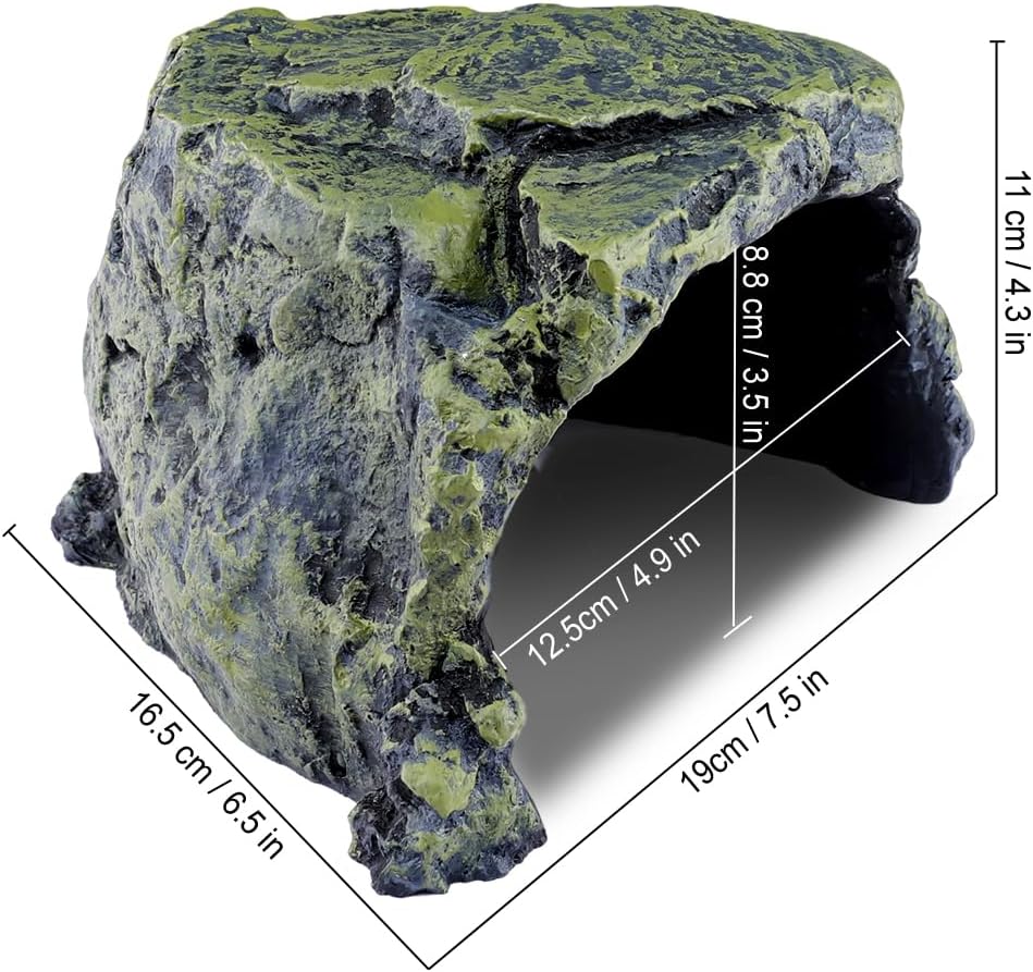 GREEN CORNER REPTILE CAVE HABITAT HIDE: This hide is weighted making the foundation very stable. Our hides have large holes for your pets to move around. This hide is a must have if you want to add functionality combined with style to your pets home. This piece is perfect for lizards, frogs, toads, small reptiles, newts, salamanders, crayfish, axolotls, snakes, territorial fish, and more!!!!