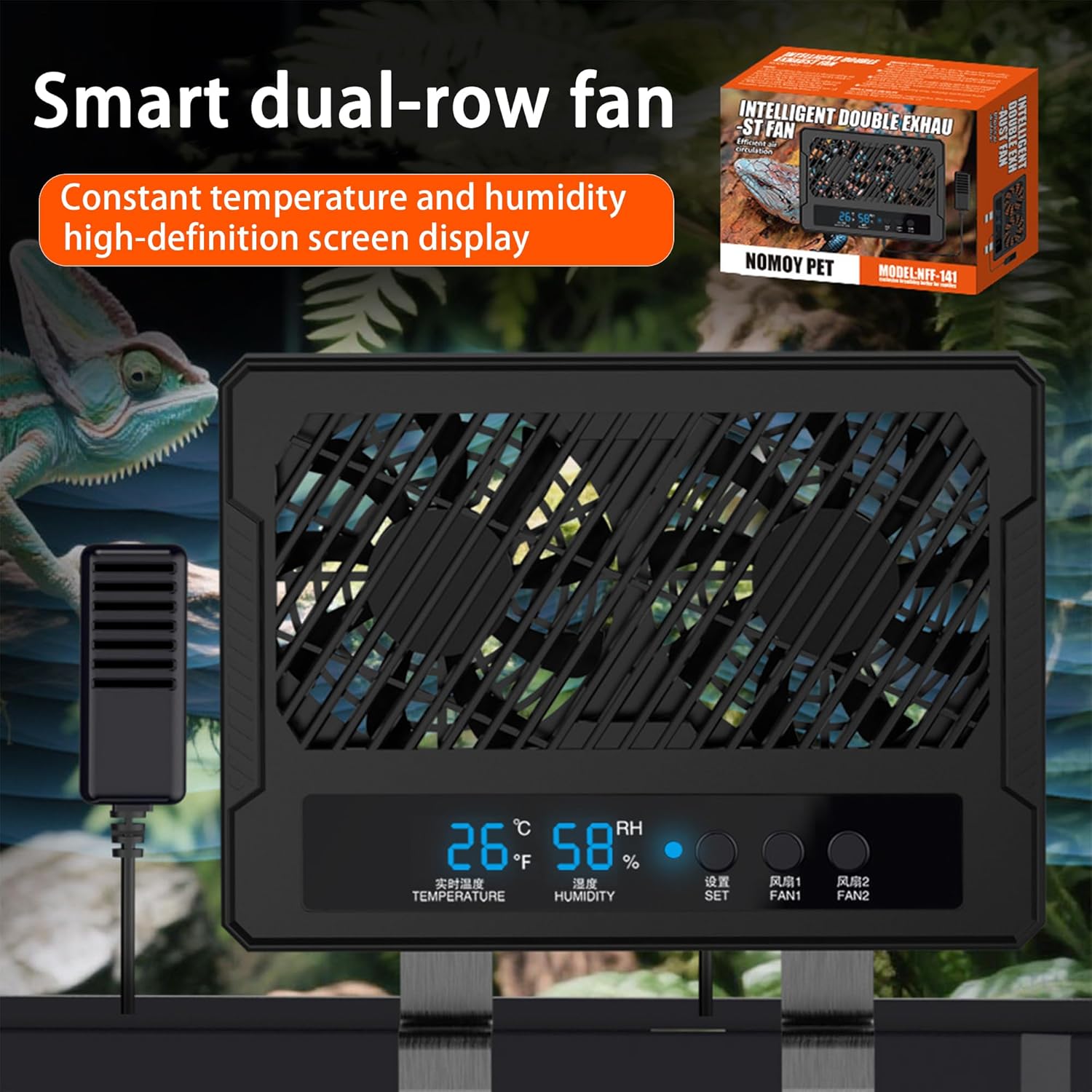 Reptile Fan & Terrarium Dehumidifier – Smart Dual-Row Humidity Fan for Reptile Tank, Snake, Gecko, Bearded Dragon Enclosure