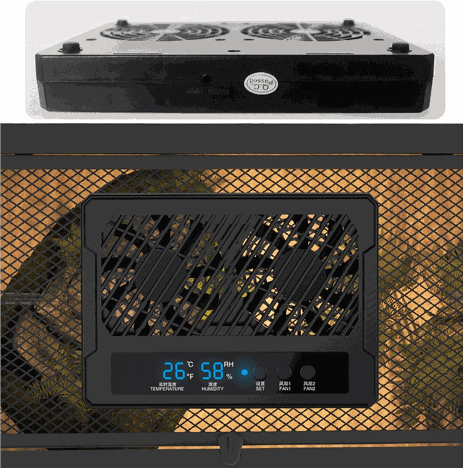 【Automatic Humidity Control & Temperature Regulation】 Set your desired humidity level and temperature with the built-in hygrometer and thermostat. The fan will automatically activate when humidity exceeds your preset threshold, ensuring your reptile tank stays comfortable and safe.