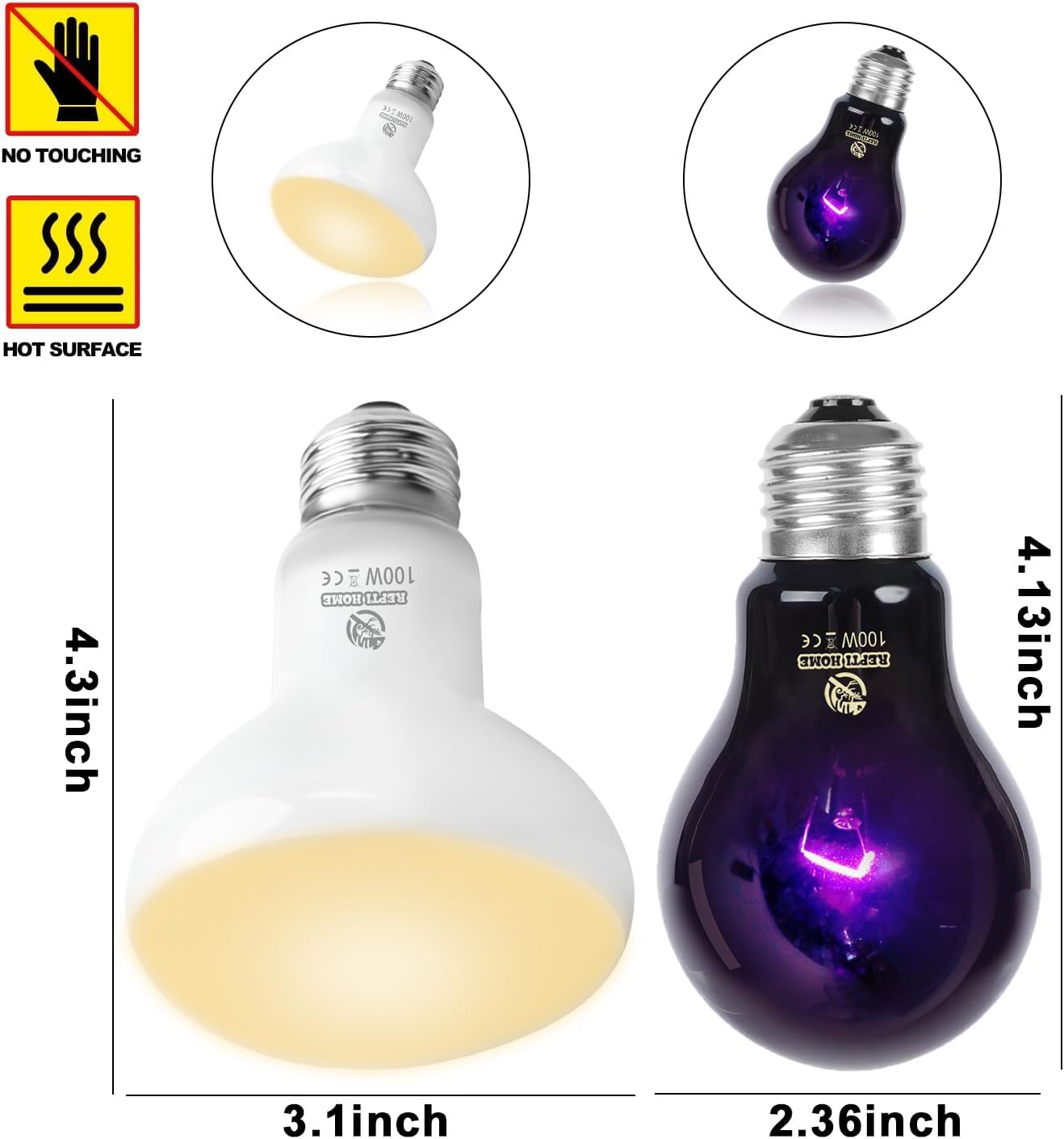 Reptile Heat Lamp 100W Combo Pack, Day and Night Basking Spot Bulb for Amphibian Includes Black Heat Lamp UVA Daylight Heating Light