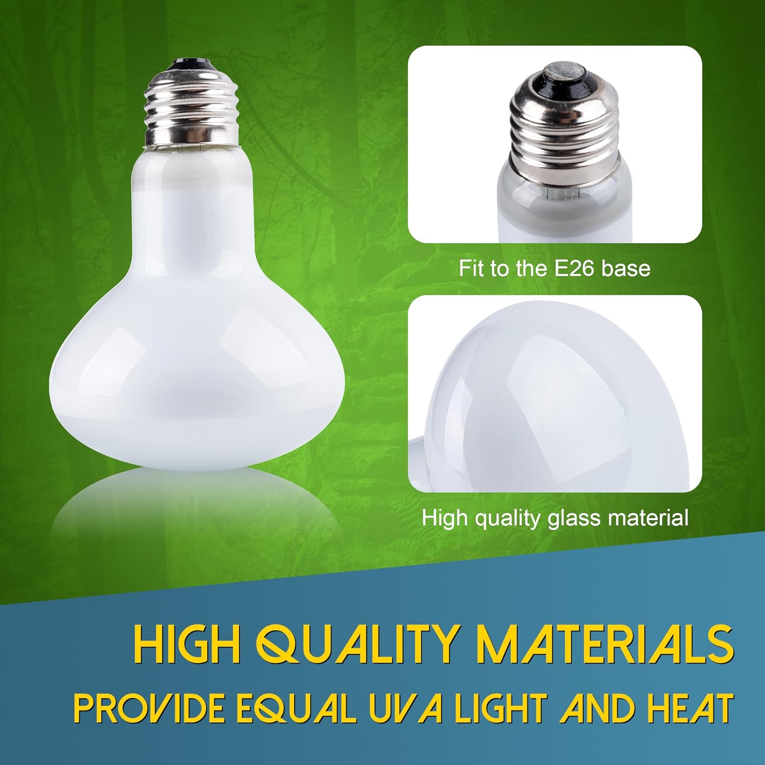 Jugbuy reptile heat bulbs can simulated sunlight, provides adequate UVA light and heat, fits for reptiles and amphibians