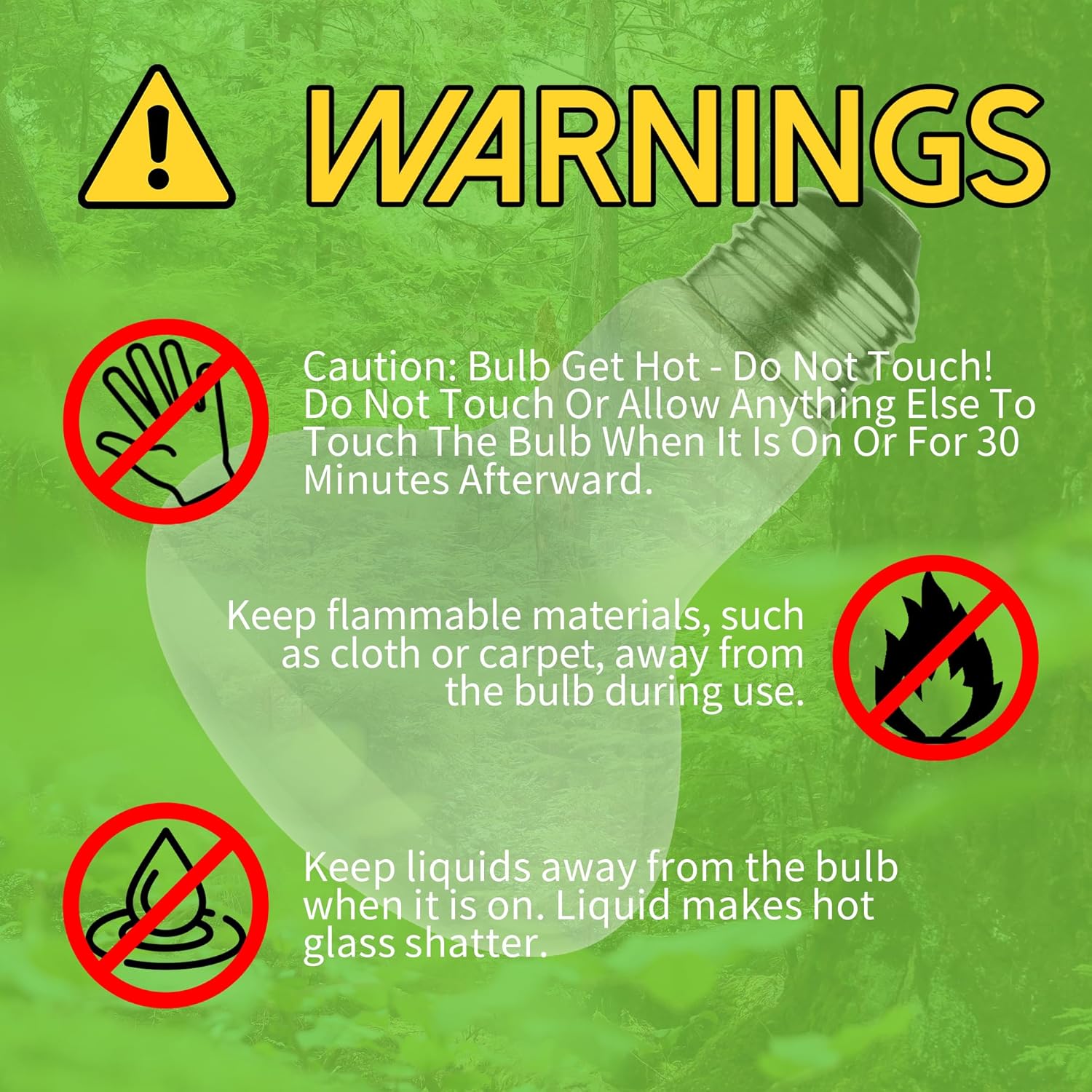 [Fits for Reptiles and Amphibians] Reptile heat bulb is suitable for various animals, including tortoises, turtles, geckos, snakes, iguanas, lizards, chameleons, frogs, toads, chickens, hedgehog hermit crabs, uromastyx, chuckwallas, monitors, tegus, bearded dragons, etc.