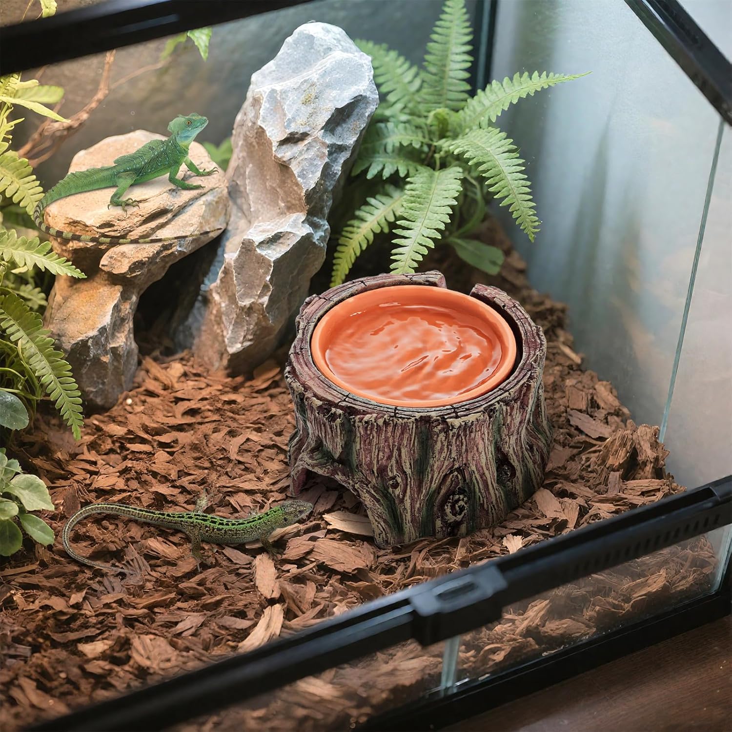 Resin base can be used as food dish, meeting the various usage needs of small reptiles.