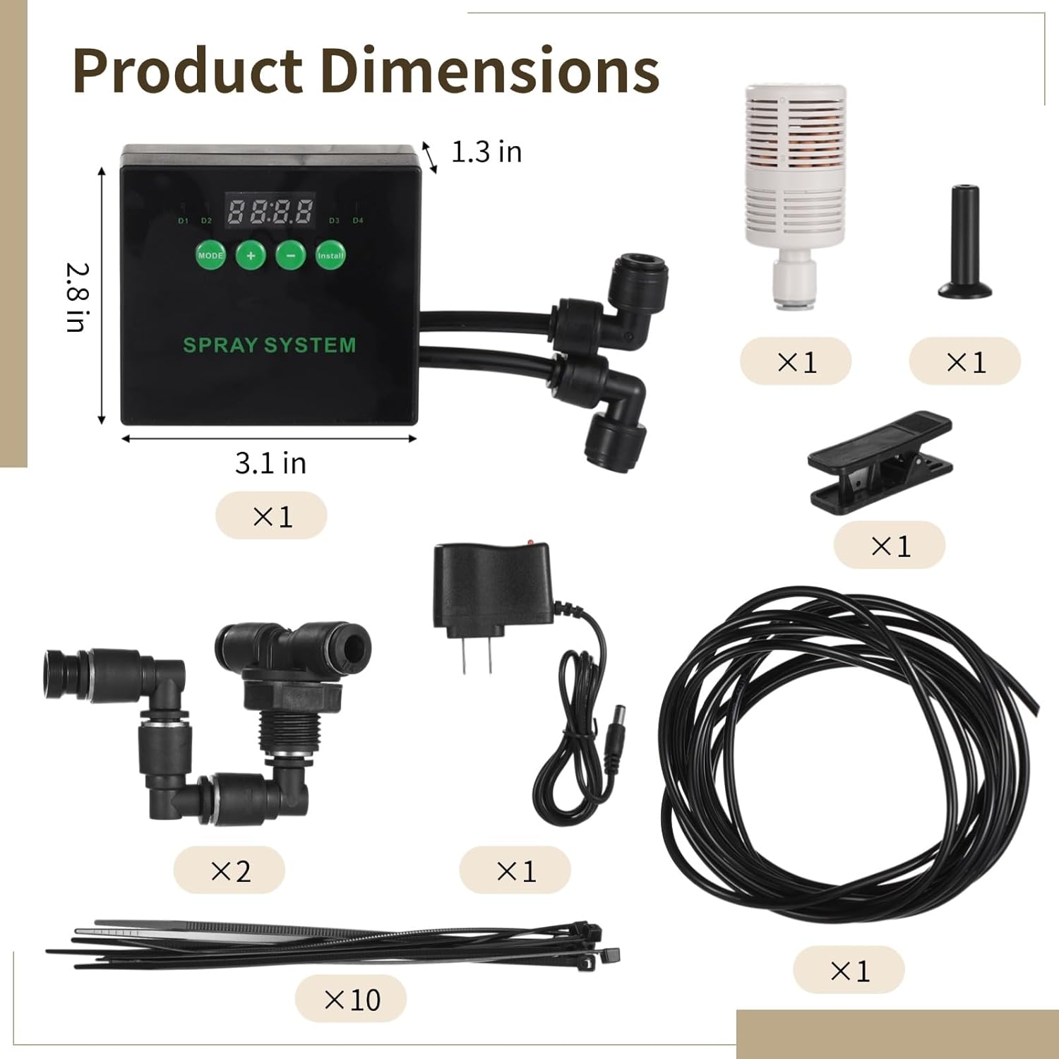 Smart Timing & Dual Spray Modes: Features a smart timer with adjustable spray duration (0-99 seconds) and interval (0-99 hours); 2 spray modes switchable – pulse and continuous for versatile humidity control