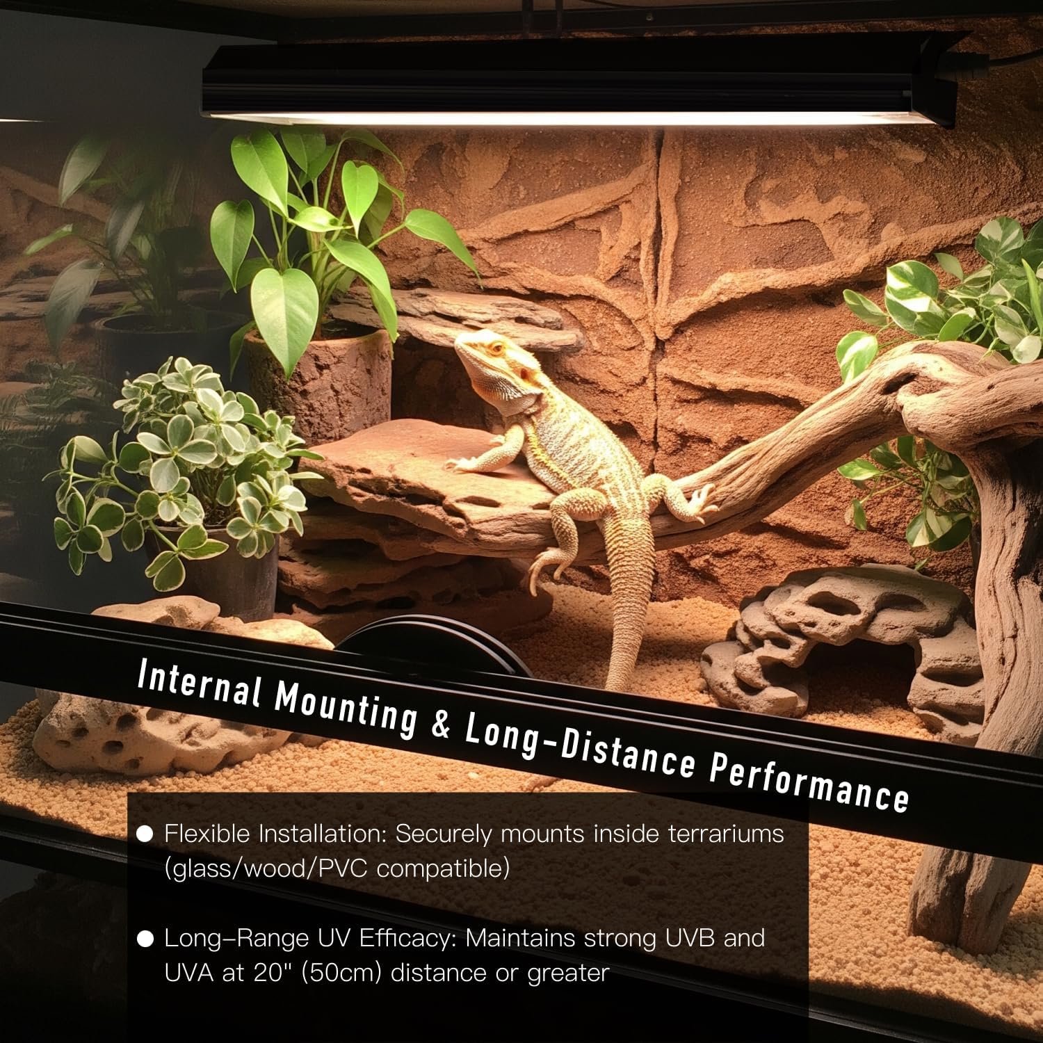 Energy-Saving LED Technology – 18W LED consumes 50% less power than traditional T5 bulbs while providing full-spectrum UVA/UVB. Runs cool without overheating terrariums.