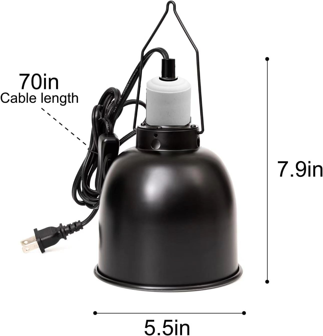 【Durable Ceramic Socket & Even Heat Distribution – Safe for 24/7 Use】 Engineered for safety and longevity. The UL-listed ceramic socket withstands extreme heat without melting, outperforming plastic sockets. The reflective aluminum dome ensures even heat distribution across your reptile tank. Trust this heat lamp fixture for safe, continuous operation, day and night, worry-free.