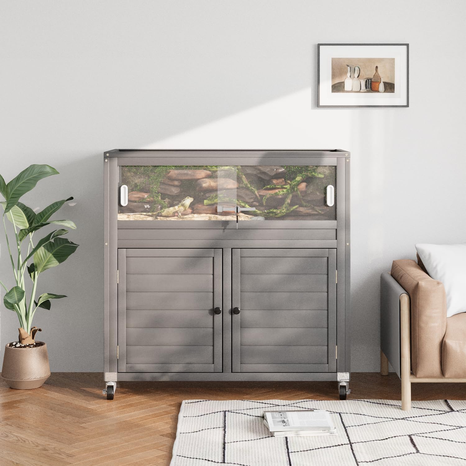 8 reviews for Reptile Tank with Stand,30 Gallon Bearded Dragon Tank with Large Storage Cabinet,Durable Wood Reptile Enclosure with Lock and Wheels,Snake Enclosure Also Fit for Lizards,Geckos
