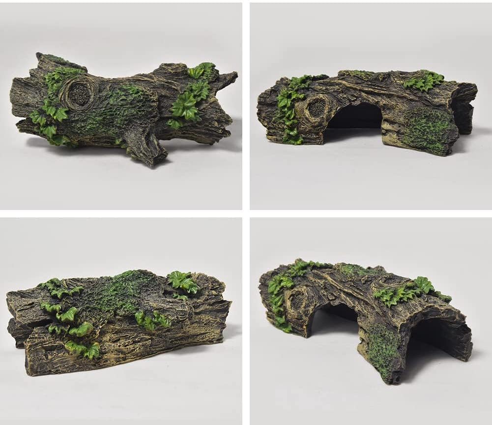 Resin Aquarium Wood Small Reptile Hide Aquarium cave Betta Log Aquarium Ornament pleco cave Snake Hideout (Tree bark)