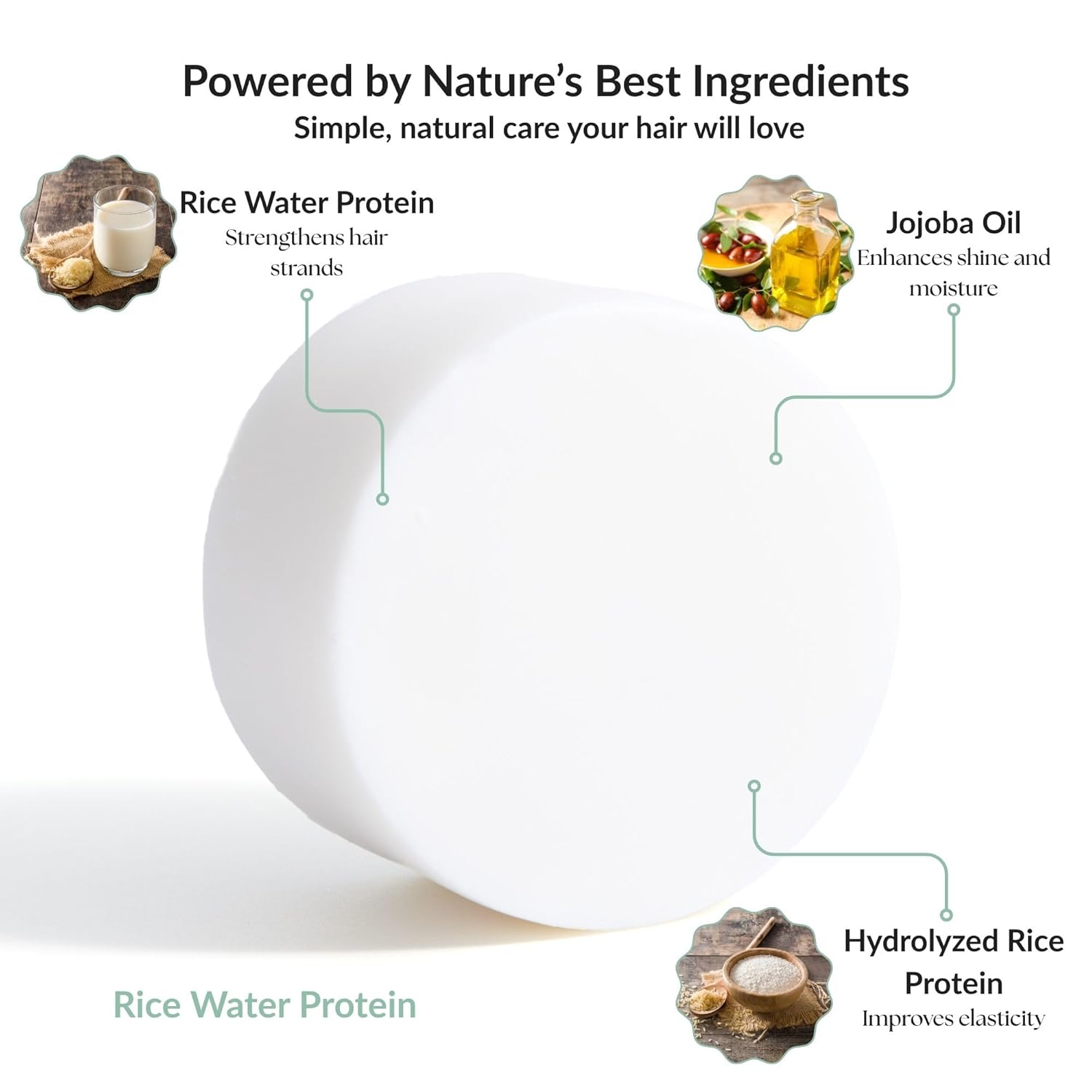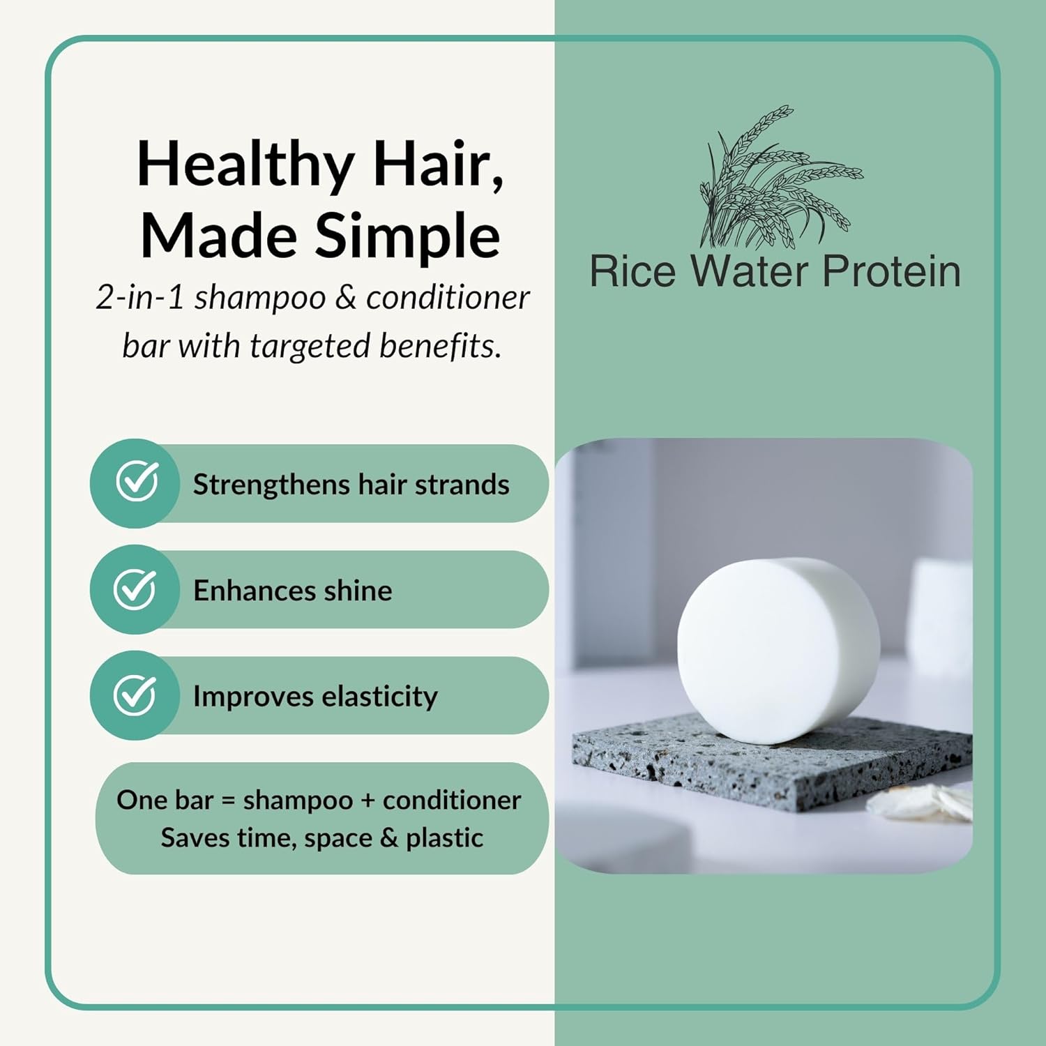 Rice Water Protein 2-in-1 Shampoo and Conditioner Bar, Strengthening & Shine-Enhancing, Improves Elasticity, Sulfate-Free, Vegan, 1 Bar (100 g)