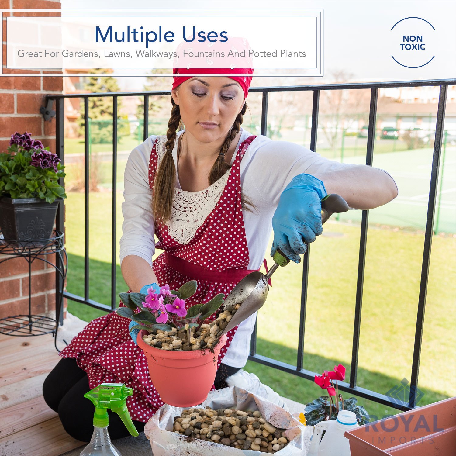 NATURAL STONES- These high quality natural stones by Royal imports are non-toxic and eco-friendly river rocks. Their natural attribute will make them last longer because they will not deteriorate like mulch does. Common applications include flowerbeds, groundcover, decorative concrete topping, or walkway paving. Decorative rocks are a permanent and cost-effective alternative to annual wood mulching.